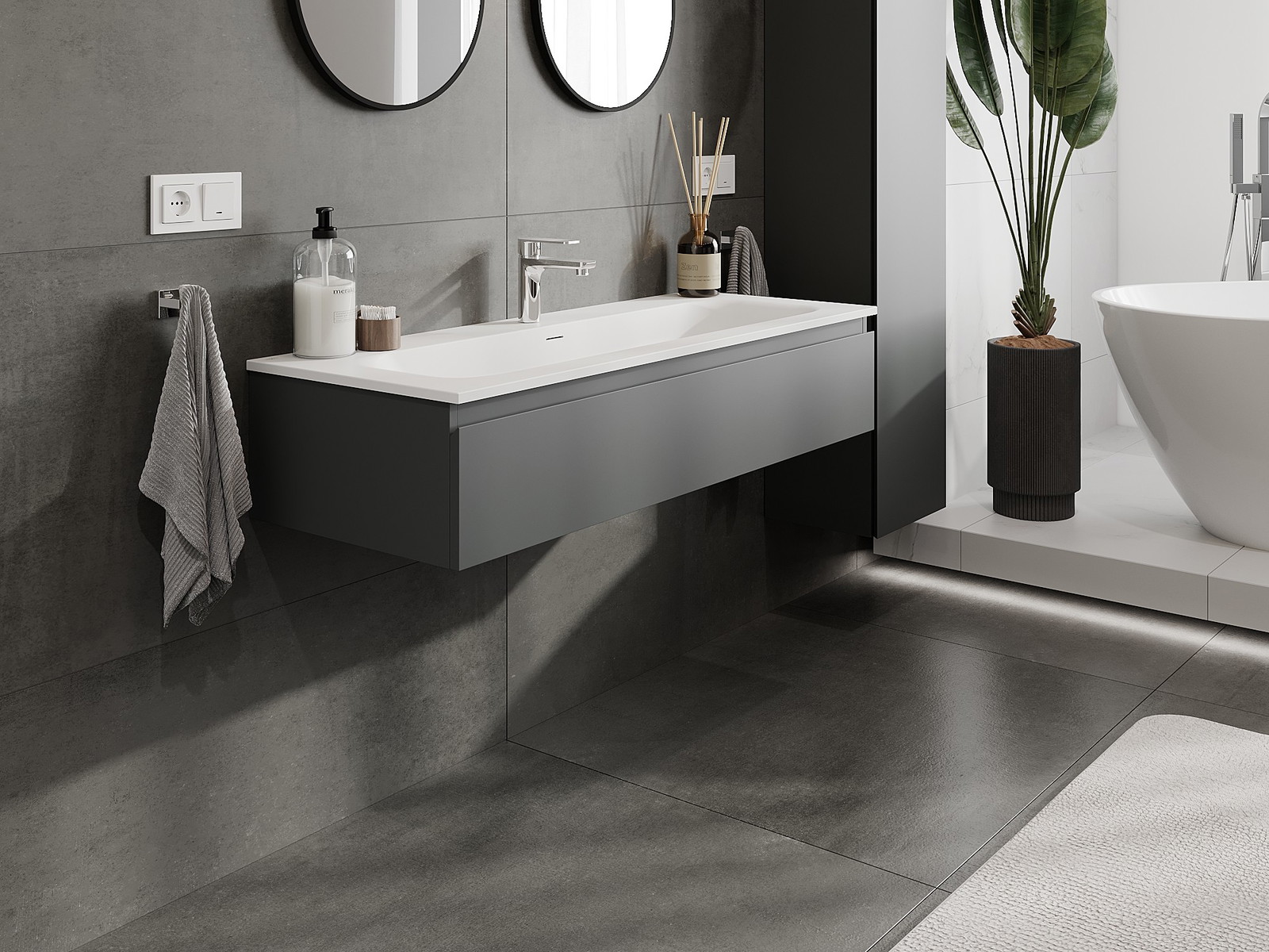 Mexen Orio 120 cm-es fürdőszobaszekrény Vela mosdóval, 1 fiók, grafit matt/fehér matt - 91A10-12023-1-BF66-W23M01