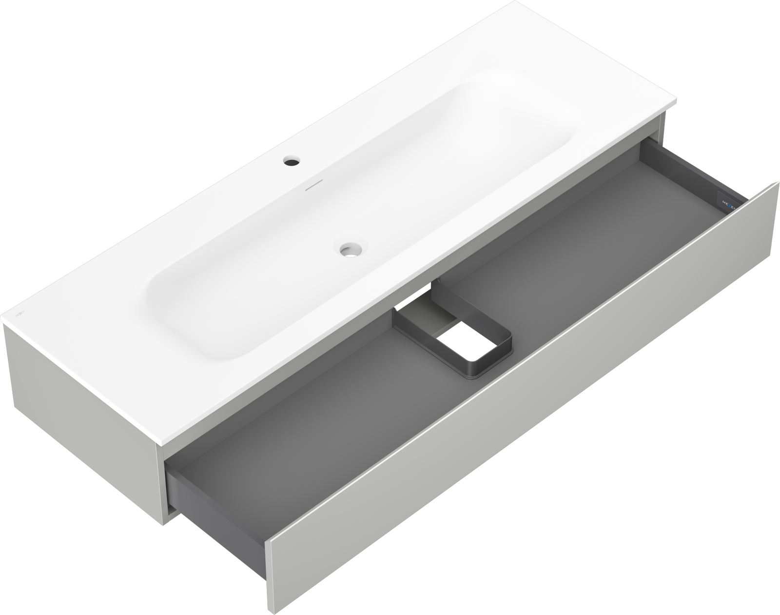 A fiókban lévő kivágás úgy van kialakítva, hogy befogadja a mosdó telepítéseknél szükséges szifont. Ennek köszönhetően a bútor teljesen funkcionálisan felszerelhető anélkül, hogy a fiók terének egy részét fel kellene áldozni a telepítés miatt.