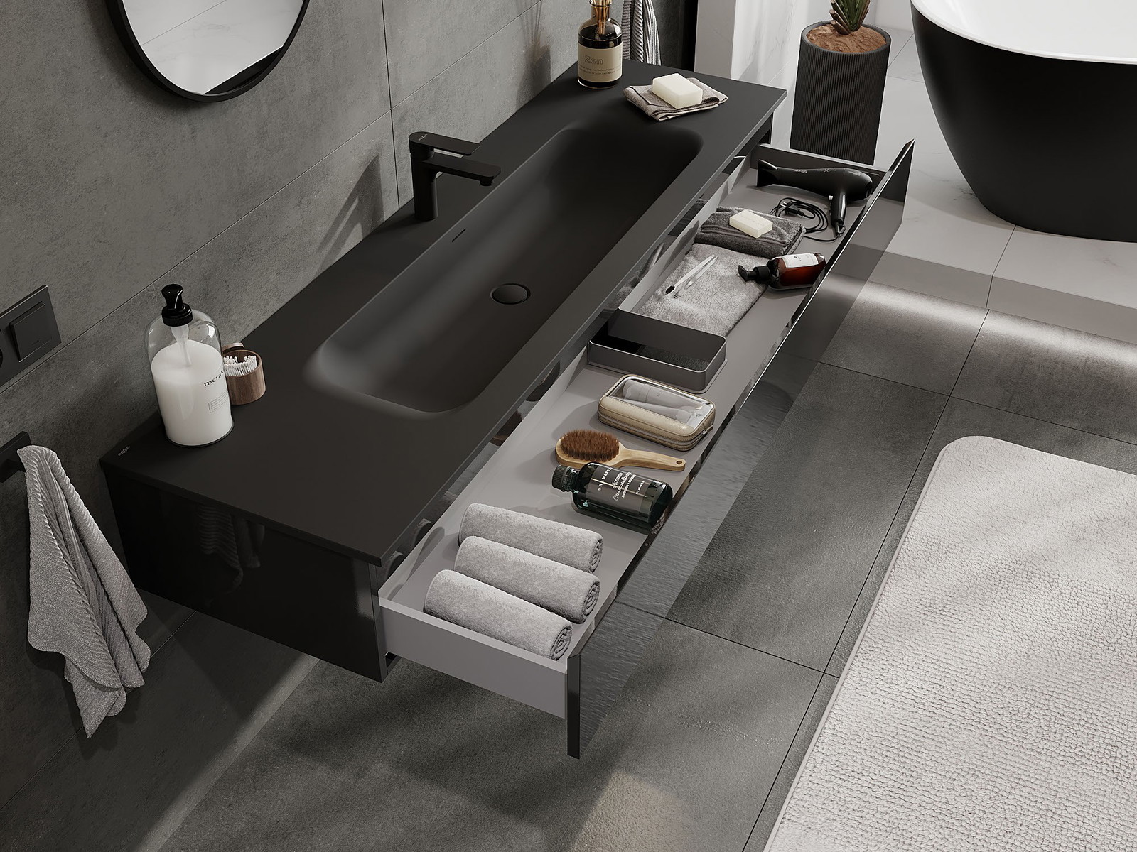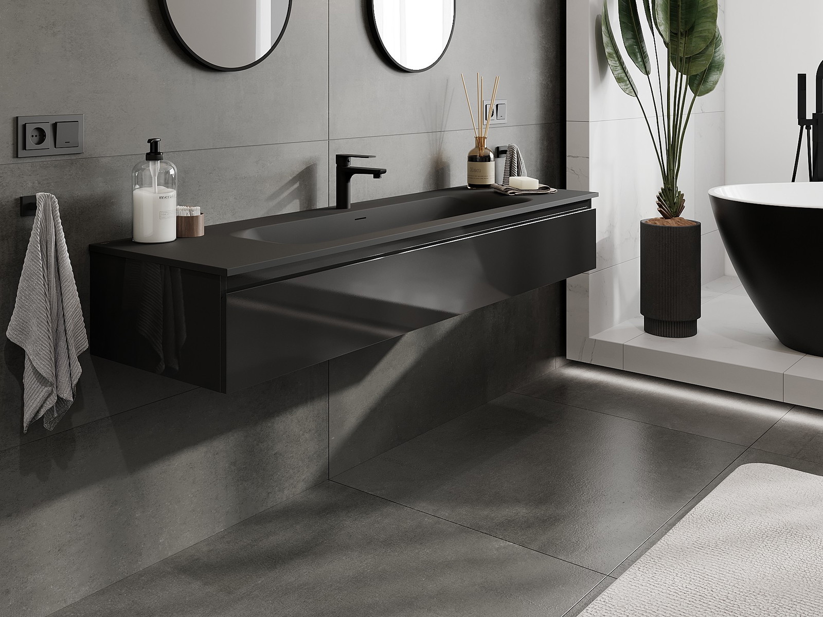 A mosdó színe: Fekete matt
