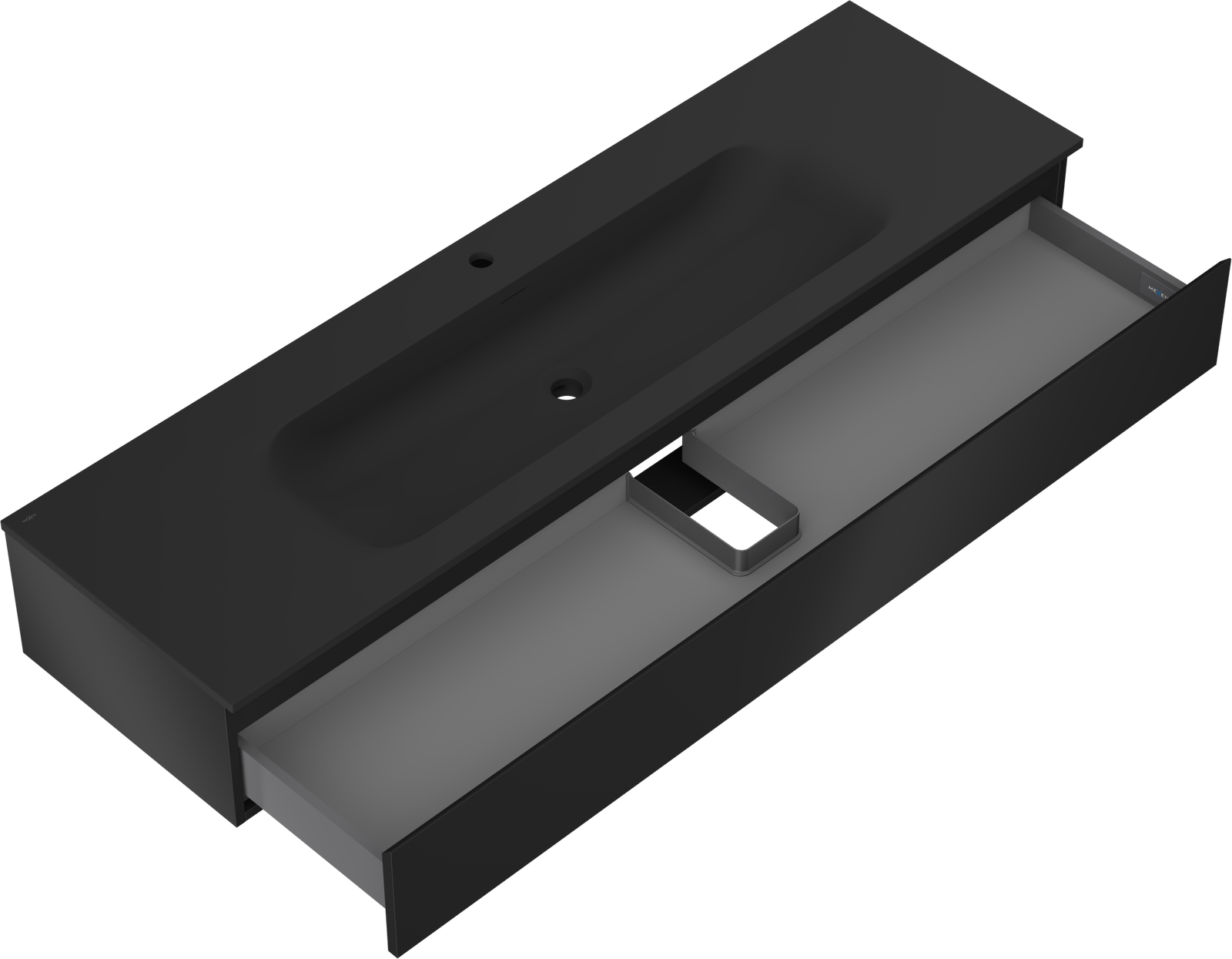 A fiókban lévő kivágás úgy van kialakítva, hogy befogadja a mosdó telepítéseknél szükséges szifont. Ennek köszönhetően a bútor teljesen funkcionálisan felszerelhető anélkül, hogy a fiók terének egy részét fel kellene áldozni a telepítés miatt.