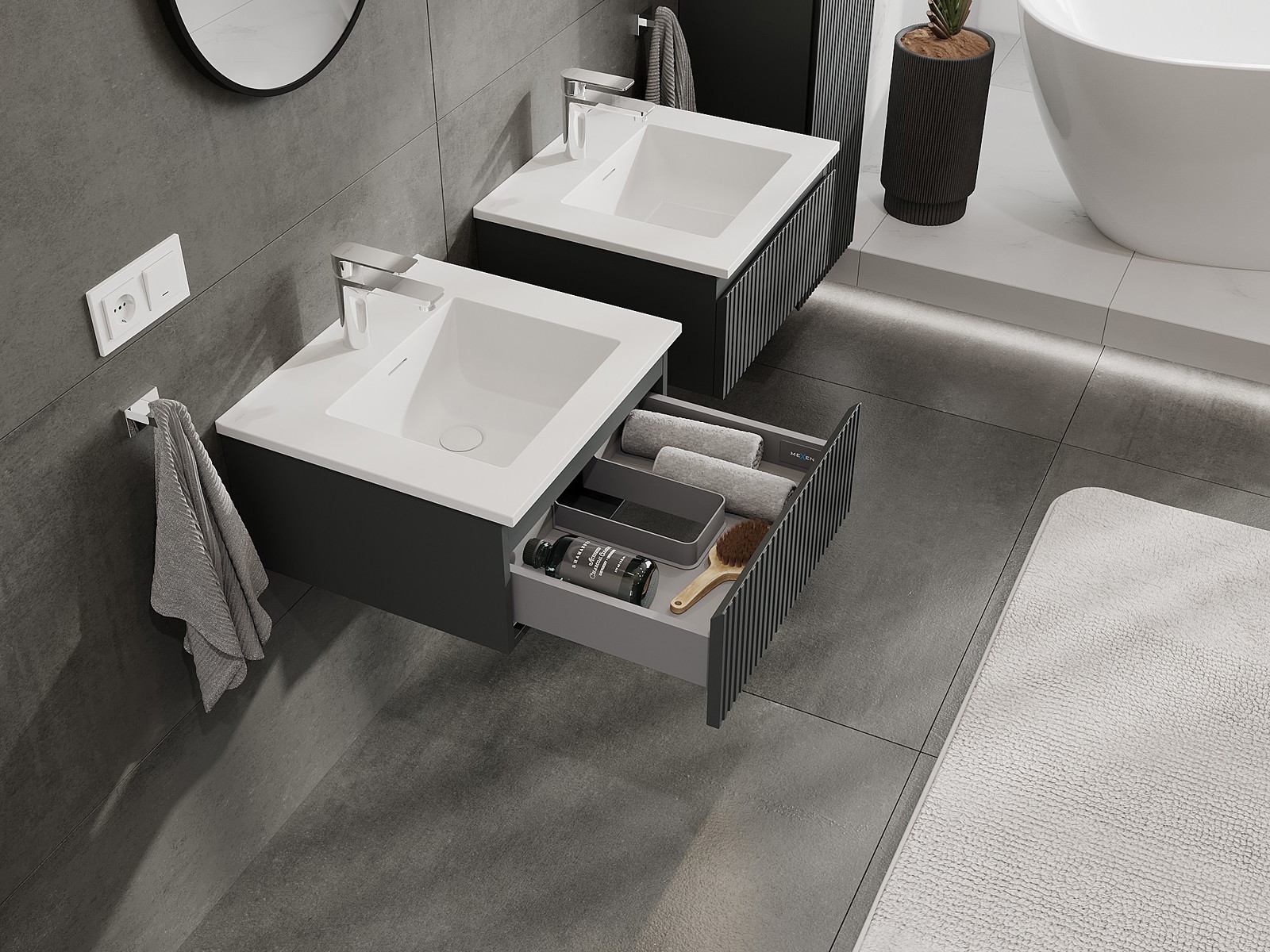 Mexen Rivel fürdőszobaszekrény 50 cm mosdóval Otis, 1 fiók, bordázott, grafit matt/fehér matt - 91A20-05023-1-BF66-W18M01