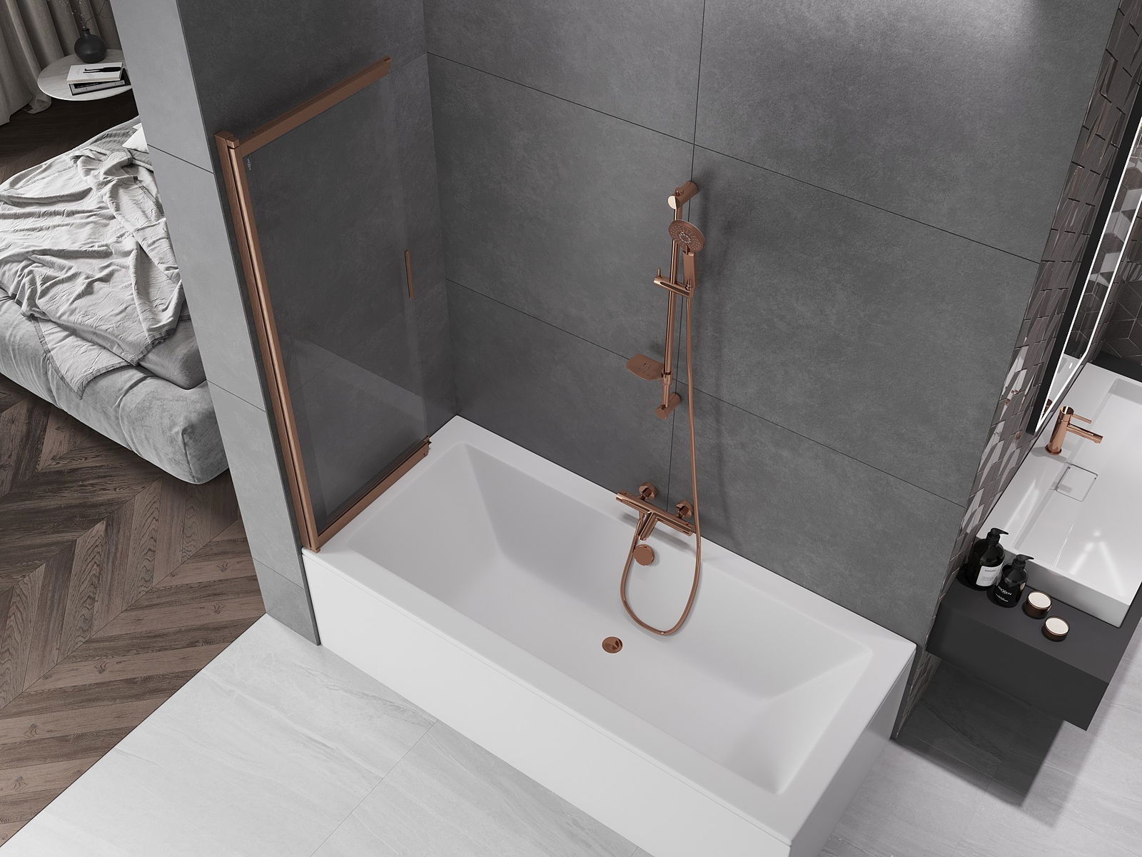 Az univerzális szerelőrendszer használatának köszönhetően a fürdőválaszfal jobb vagy bal oldalra is felszerelhető, attól függően, hogy mire van szükség. Ily módon könnyen megtervezheti a fürdőszobához igazított zuhanyzót.