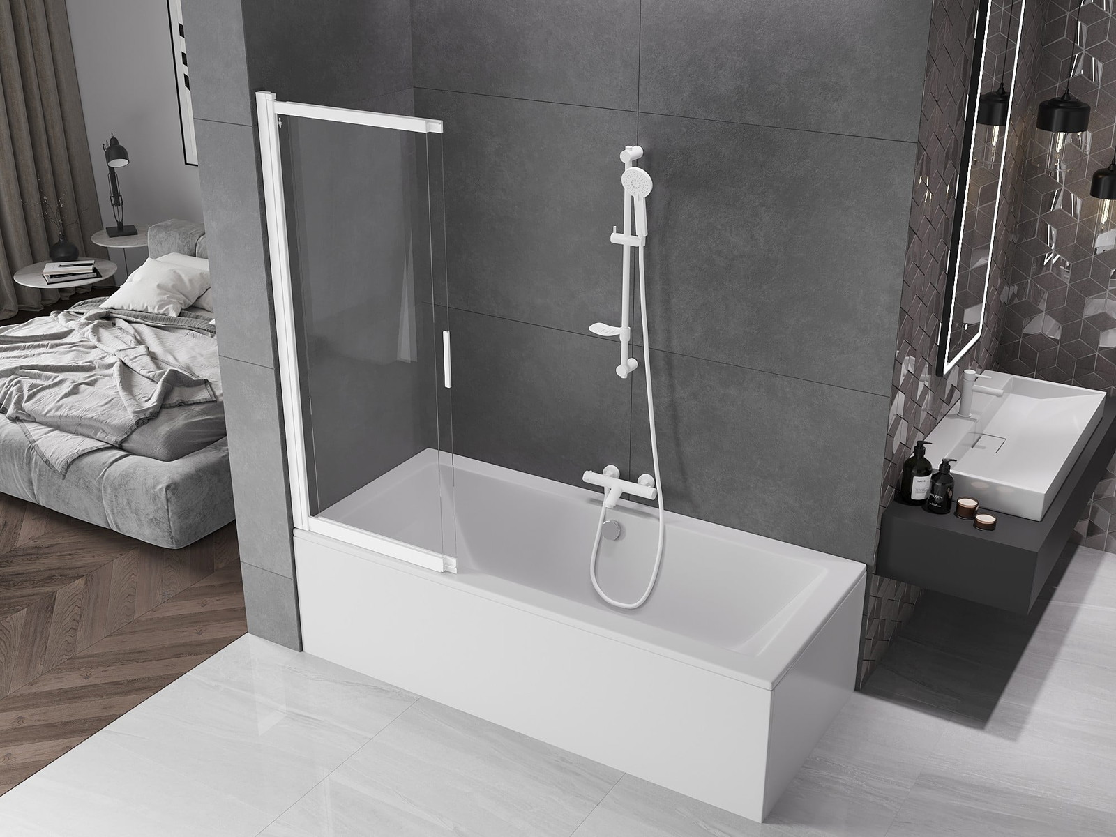 Az univerzális rögzítőrendszer alkalmazásának köszönhetően a válaszfal a szükségleteknek megfelelően a jobb vagy a bal oldalra is felszerelhető. Így könnyedén megtervezheted a fürdőszoba teréhez igazodó zuhanyzót.