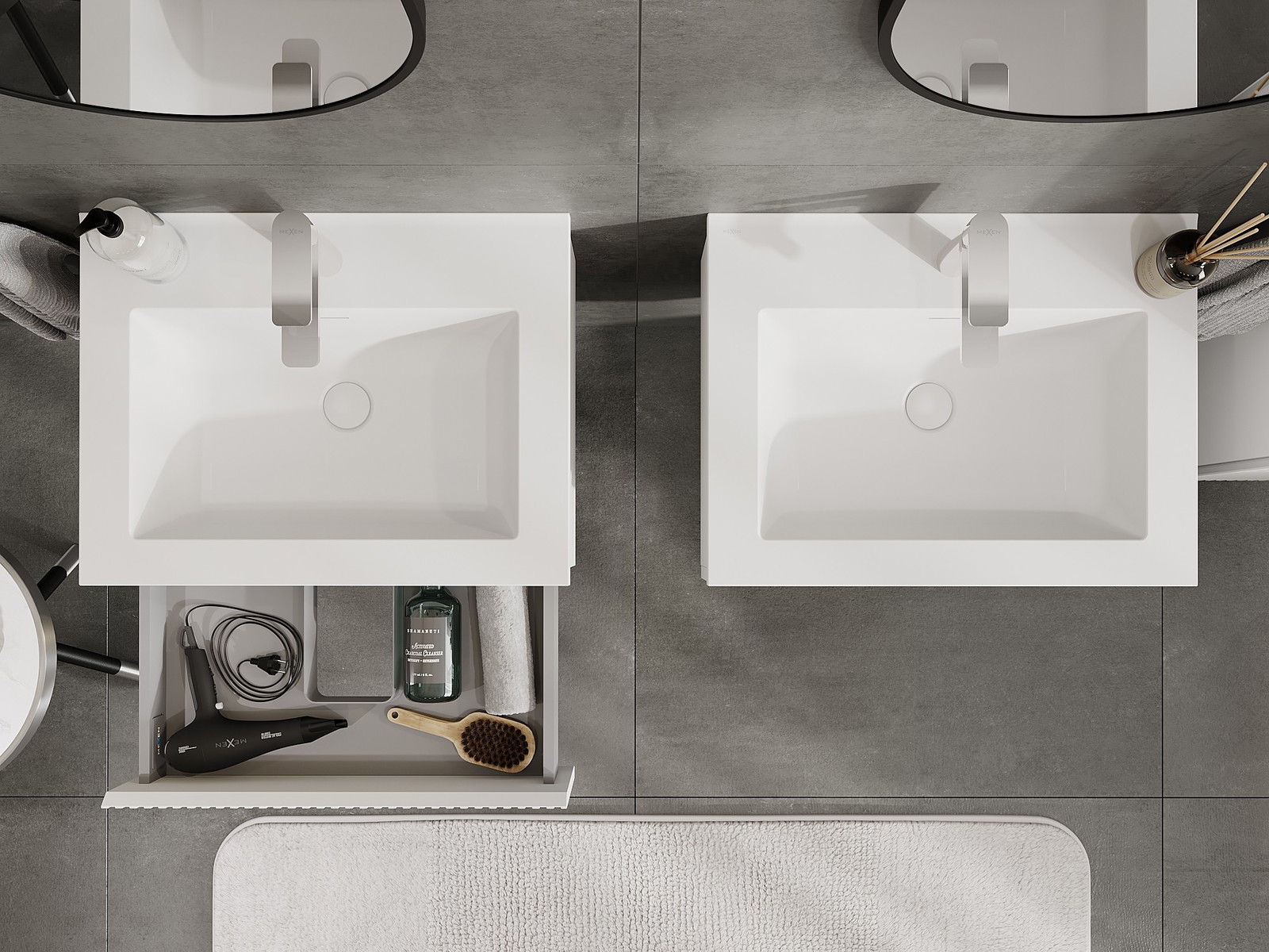 A moduláris fürdőszobabútorainkat különböző színkonfigurációkban lehet kombinálni, lehetővé téve a teljes személyre szabást. Kiválasztható mind az egyes elemek megjelenése, mind pedig funkciói, ami lehetővé teszi a bútorok személyes stílus- és használati preferenciákhoz való igazítását.