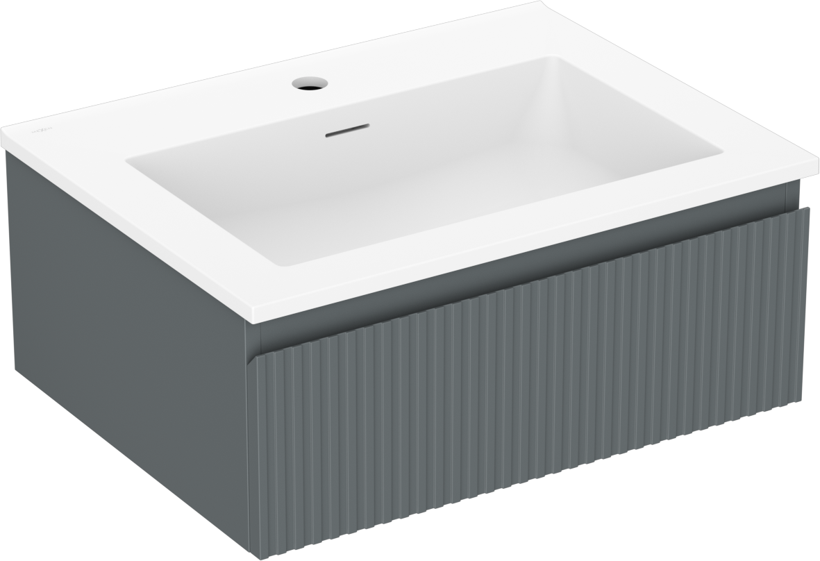 Mexen Rivel 60 cm-es fürdőszoba szekrény Otis mosdóval, 1 fiók, bordázott, grafit matt/fehér matt - 91A20-06023-1-BF66-W18M01