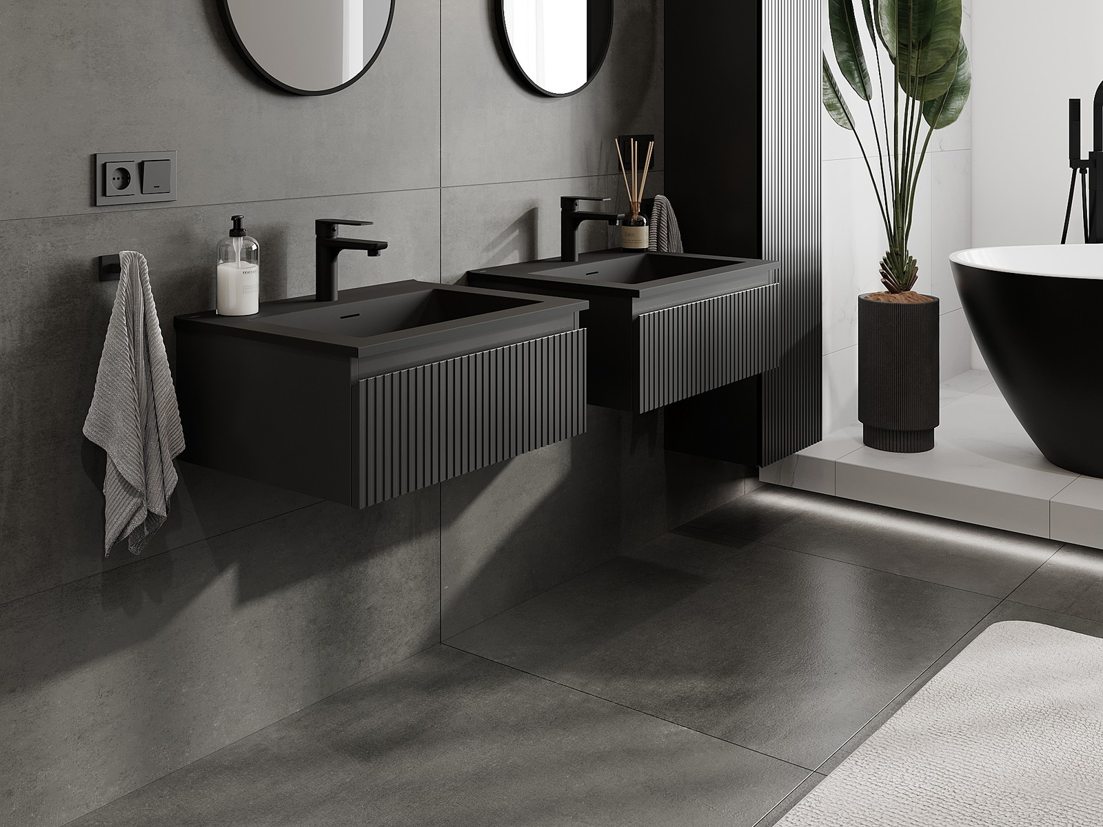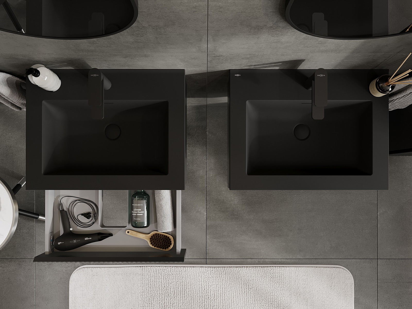 Mexen Rivel 60 cm-es fürdőszobai szekrény Otis mosdóval, 1 fiók, barázdált, fekete matt - 91A20-06023-1-BF71-W18M71