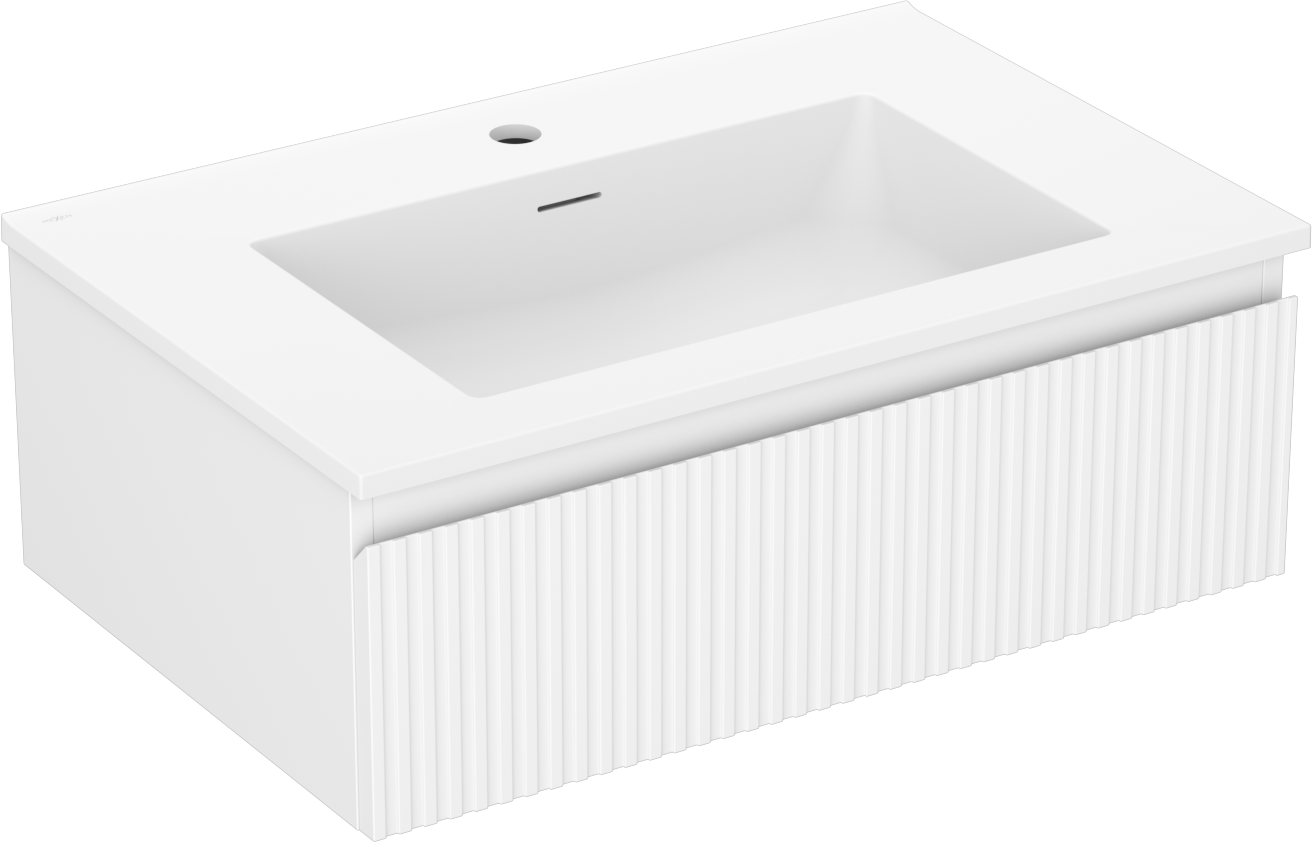 Mexen Rivel 70 cm-es fürdőszobai szekrény Otis mosdóval, 1 fiók, barázdált, matt fehér - 91A20-07023-1-BF01-W18M01