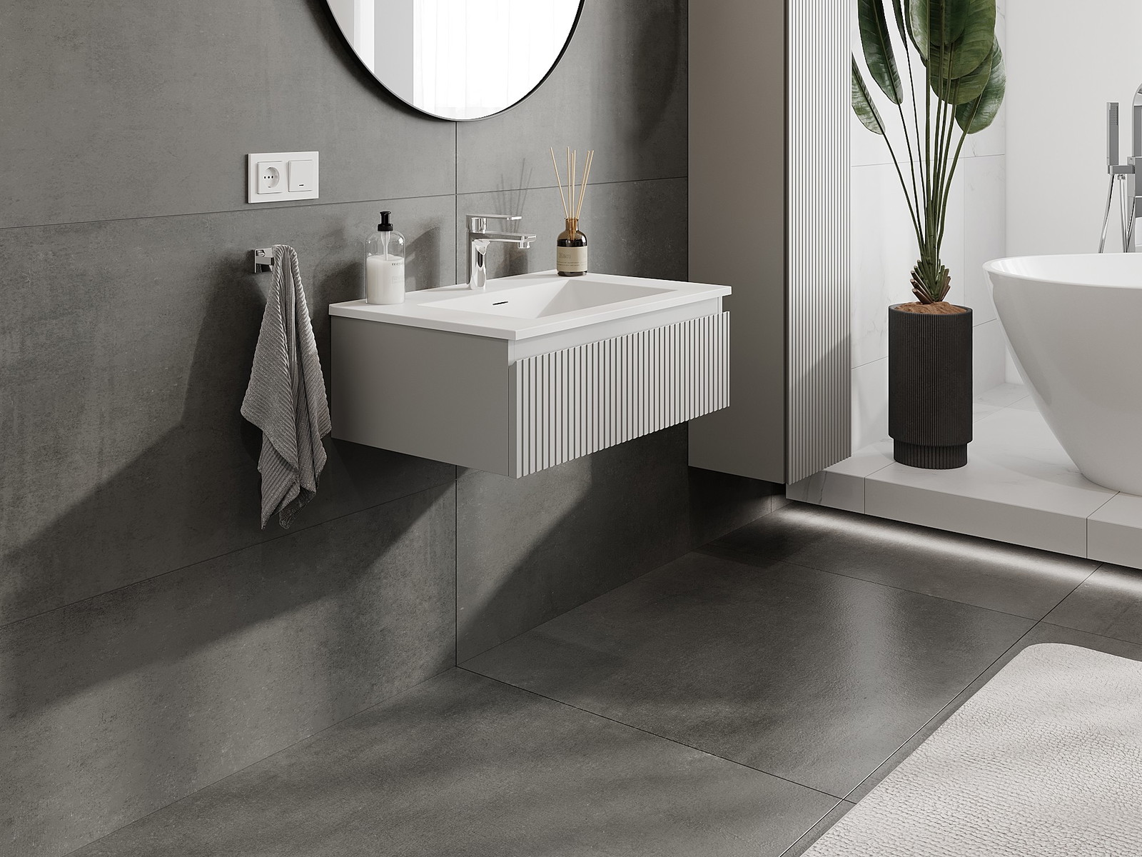 Mexen Rivel fürdőszobai szekrény 70 cm mosdóval Otis, 1 fiók, bordázott, szürke matt/fehér matt - 91A20-07023-1-BF62-W18M01