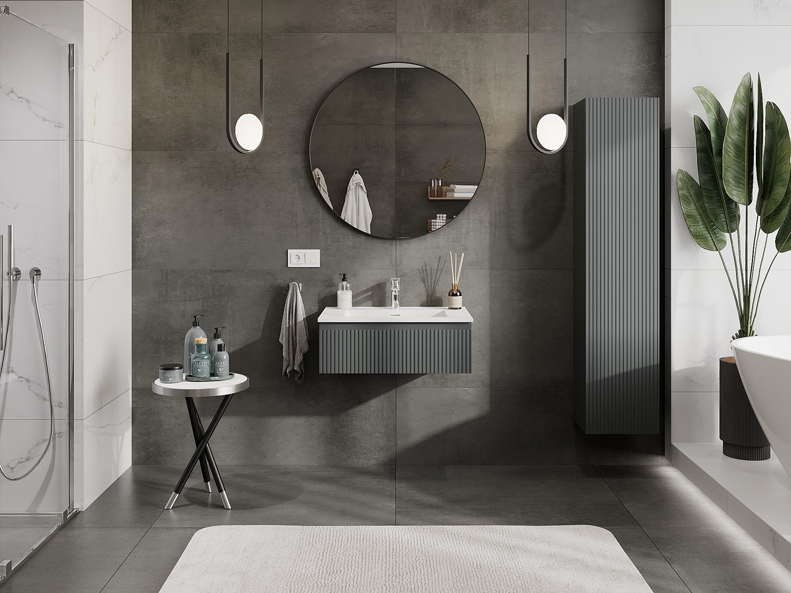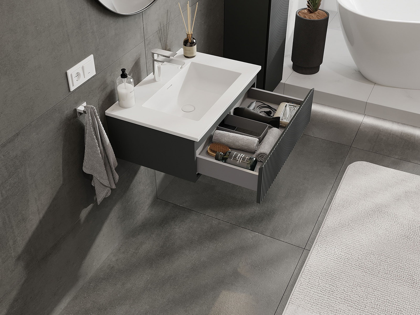 Mexen Rivel fürdőszobai szekrény 70 cm Otis mosdóval, 1 fiók, bordázott, grafit matt/fehér matt - 91A20-07023-1-BF66-W18M01
