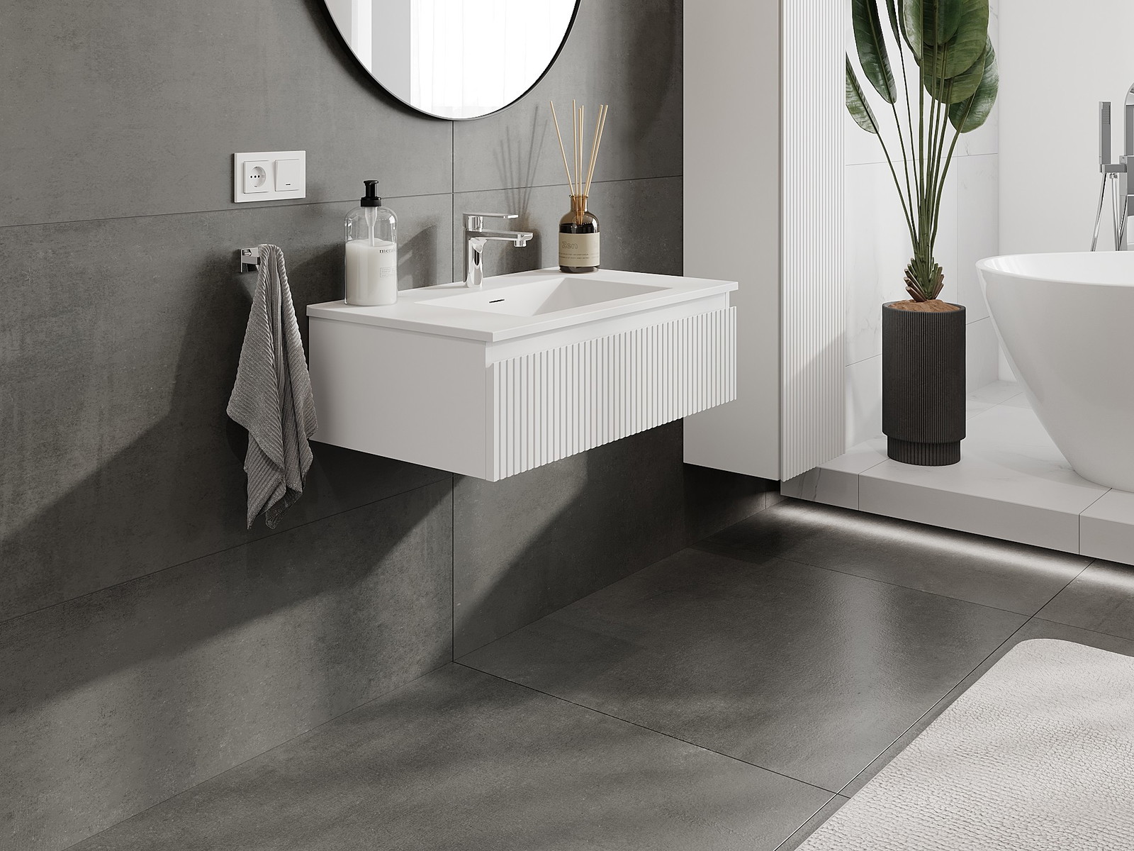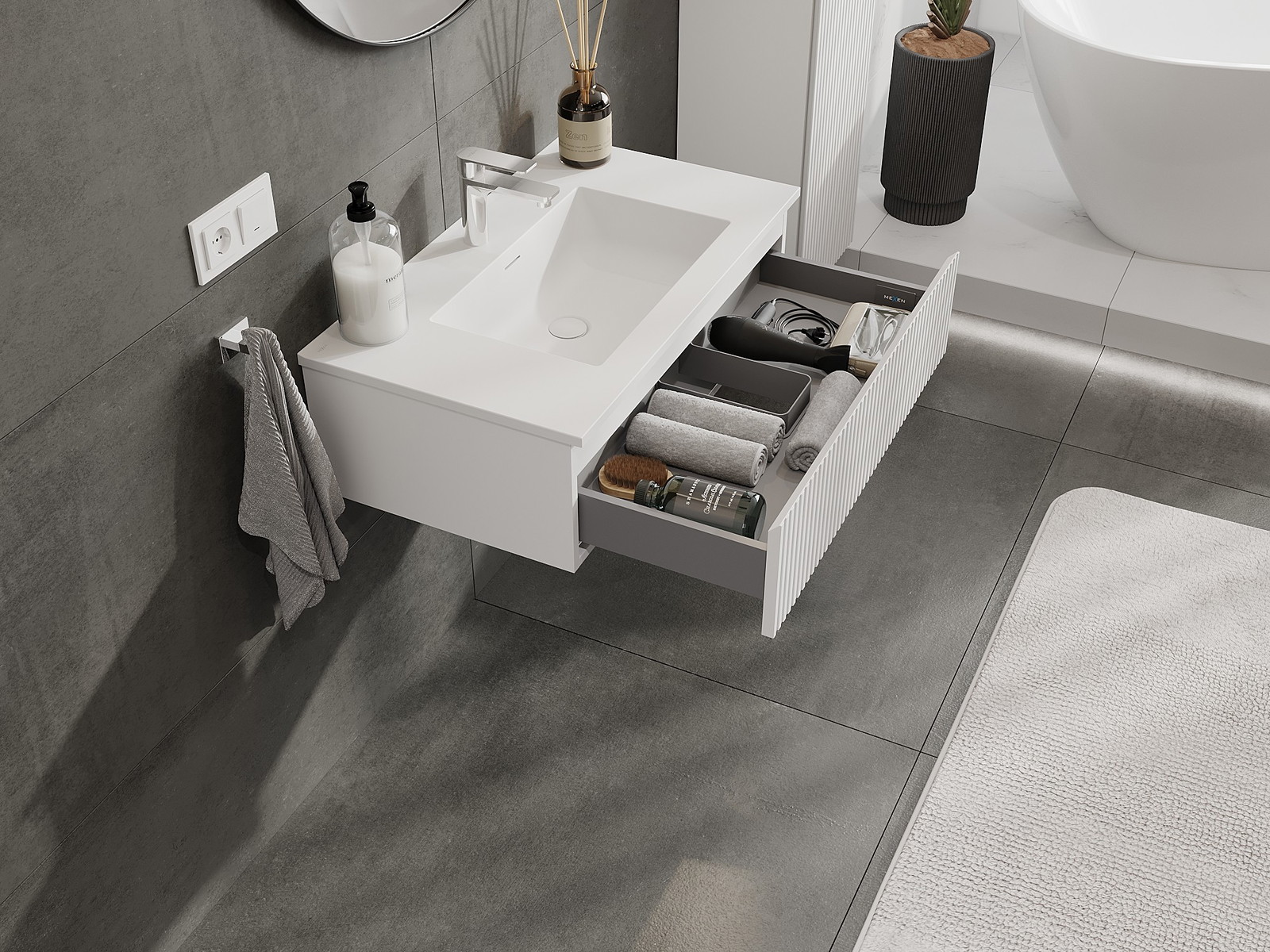 Mexen Rivel fürdőszobai szekrény 80 cm Otis mosdóval, 1 fiók, bordázott, fehér matt - 91A20-08023-1-BF01-W18M01