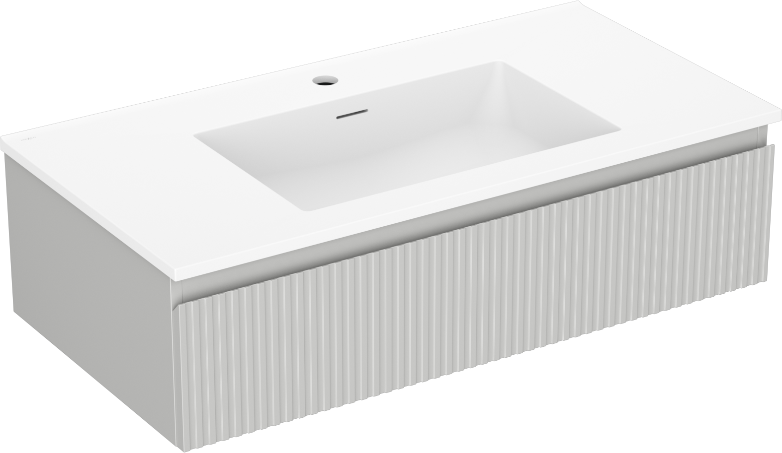 Mexen Rivel 90 cm-es fürdőszobai szekrény Otis mosdóval, 1 fiók, bordázott, szürke matt/fehér matt - 91A20-09023-1-BF62-W18M01
