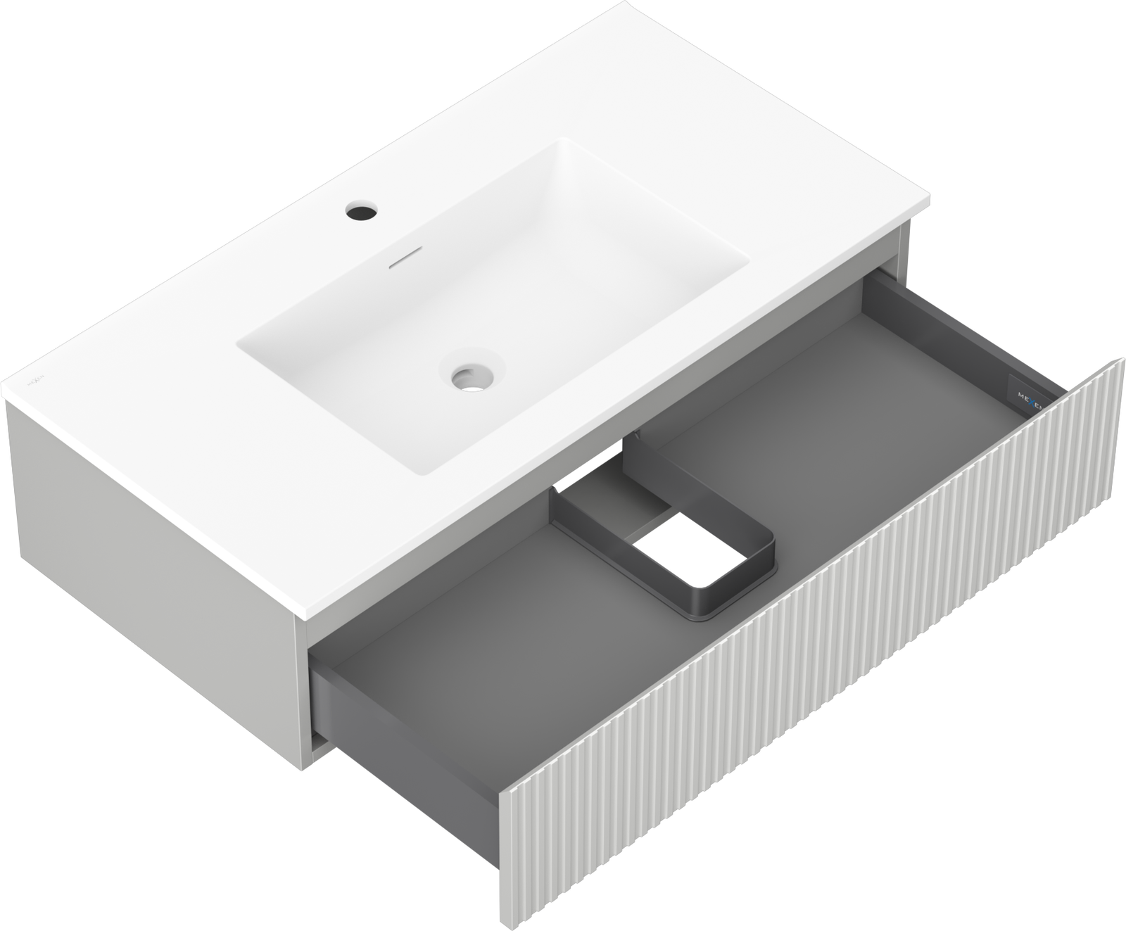 A fiókban lévő kivágás úgy van kialakítva, hogy befogadja a mosdó telepítéseknél szükséges szifont. Ennek köszönhetően a bútor teljesen funkcionálisan felszerelhető anélkül, hogy a fiók terének egy részét fel kellene áldozni a telepítés miatt.
