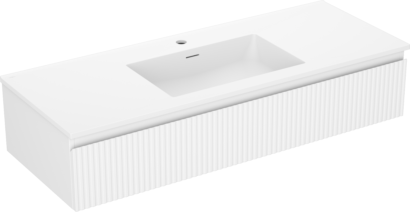 Mexen Rivel fürdőszobaszekrény 120 cm Otis mosdóval, 1 fiók, bordázott, fehér matt - 91A20-12023-1-BF01-W18M01