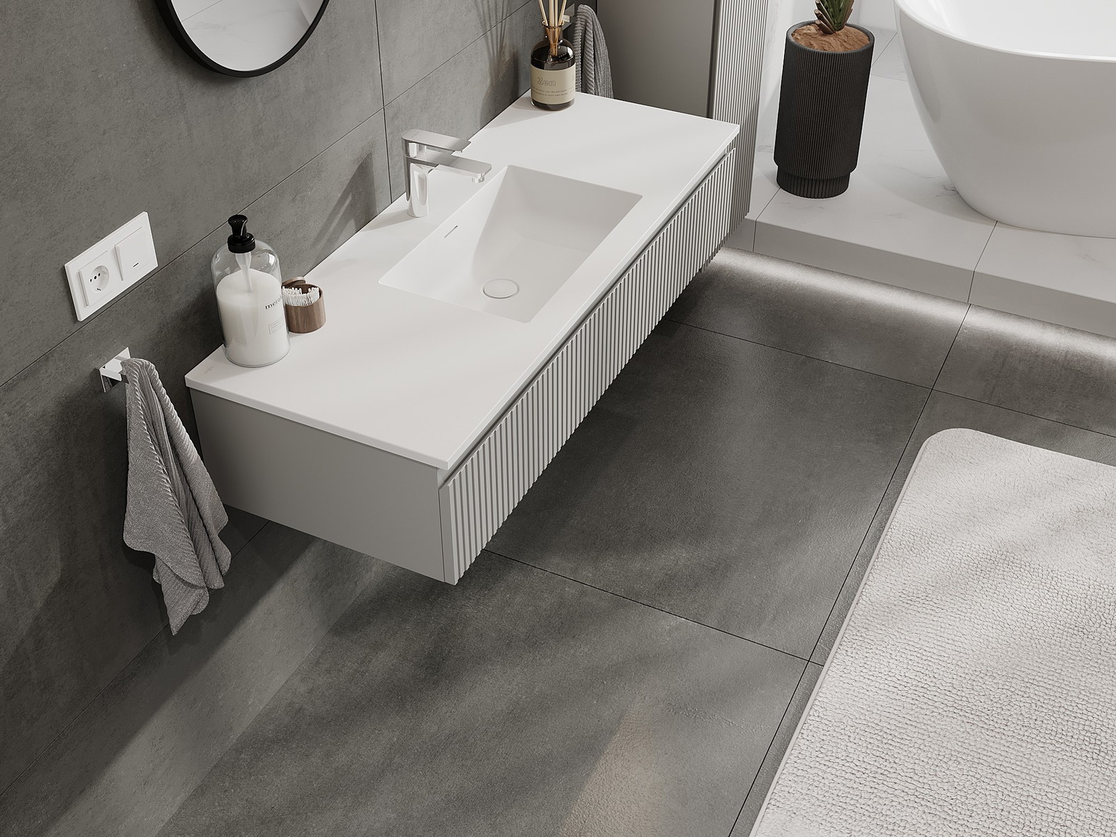 Mexen Rivel fürdőszobai szekrény 120 cm mosdóval Otis, 1 fiókos, barázdált, szürke matt/fehér matt - 91A20-12023-1-BF62-W18M01