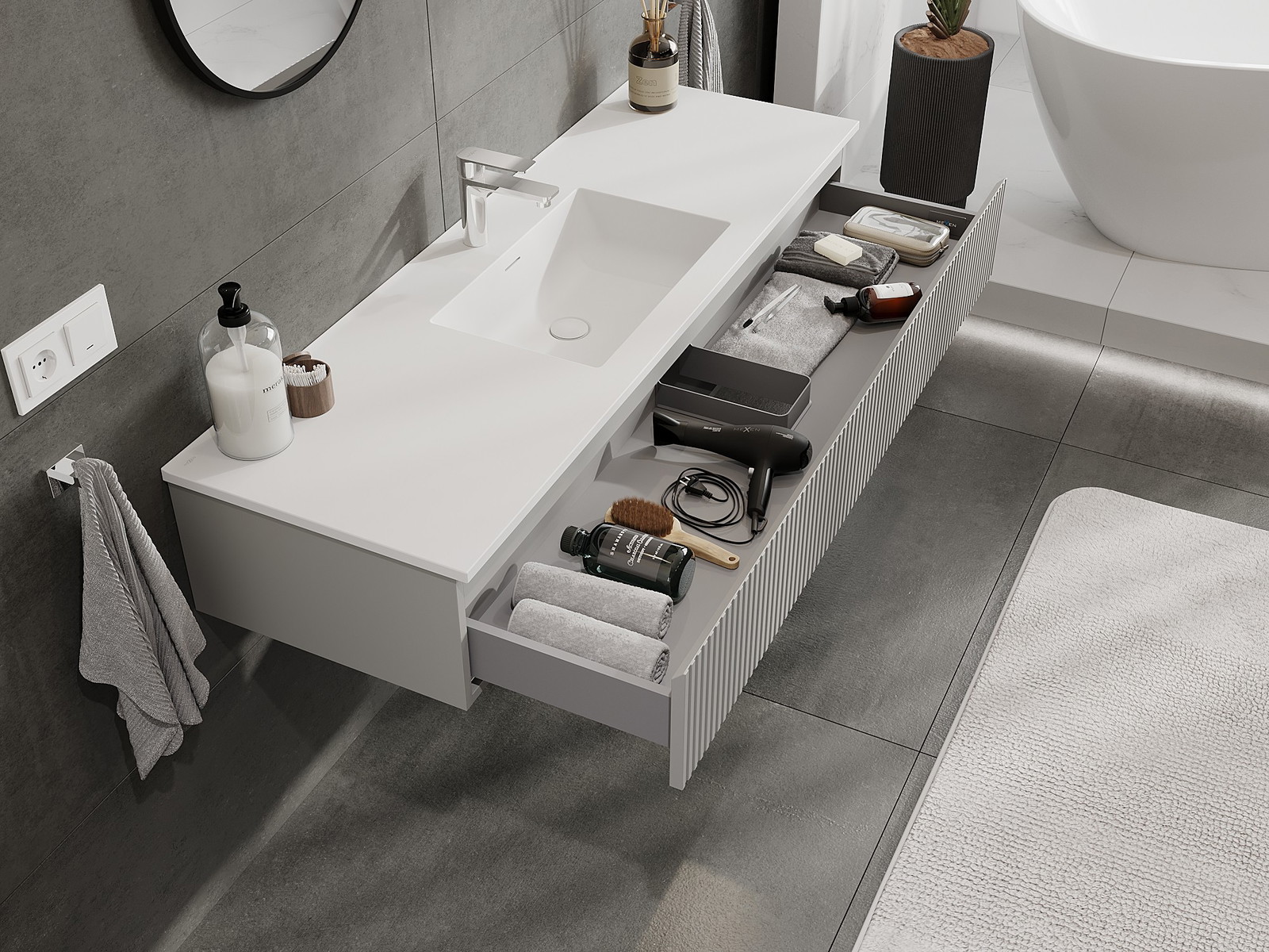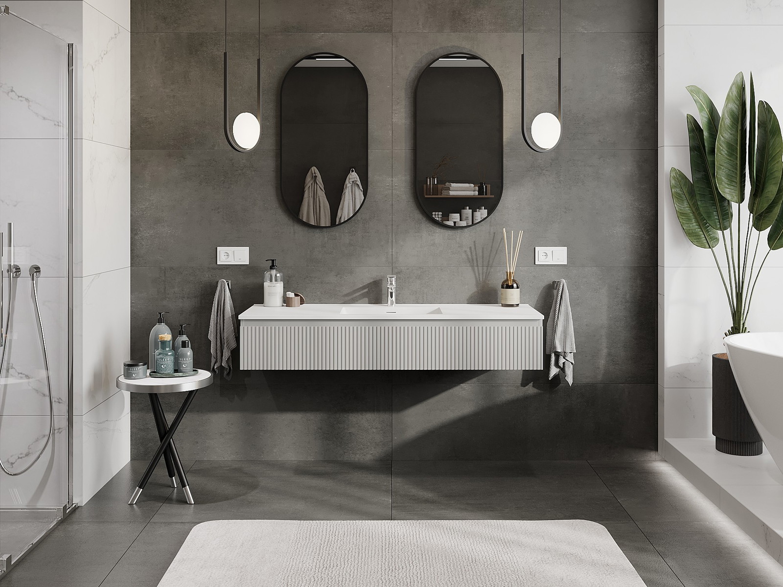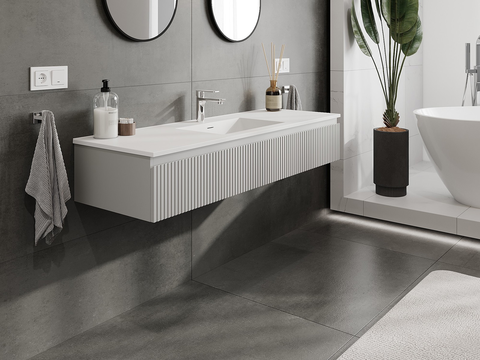 Mexen Rivel fürdőszobai szekrény 140 cm mosdóval Otis, 1 fiók, bordázott, szürke matt/fehér matt - 91A20-14023-1-BF62-W18M01