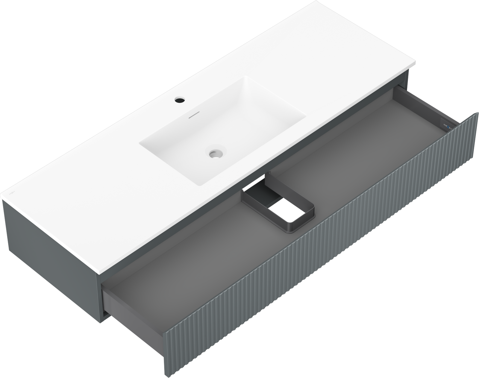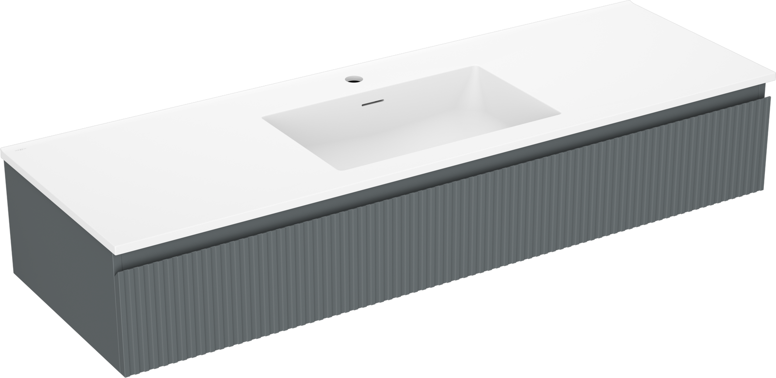 Mexen Rivel 140 cm-es Otis fürdőszobai szekrény mosdókagylóval, 1 fiók, bordázott, grafit matt/fehér matt -