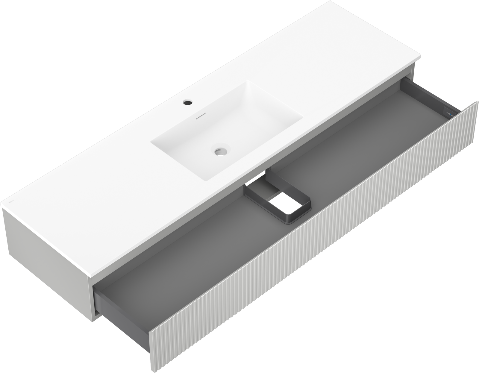 A fiókban lévő kivágás úgy van kialakítva, hogy befogadja a mosdó telepítéseknél szükséges szifont. Ennek köszönhetően a bútor teljesen funkcionálisan felszerelhető anélkül, hogy a fiók terének egy részét fel kellene áldozni a telepítés miatt.