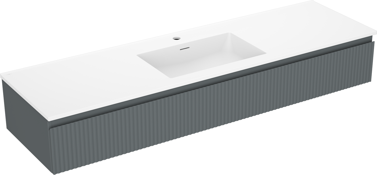 Mexen Rivel 160 cm-es fürdőszobaszekrény mosdókagylóval, Otis, 1 fiókos, barázdált, grafit matt/fehér matt -