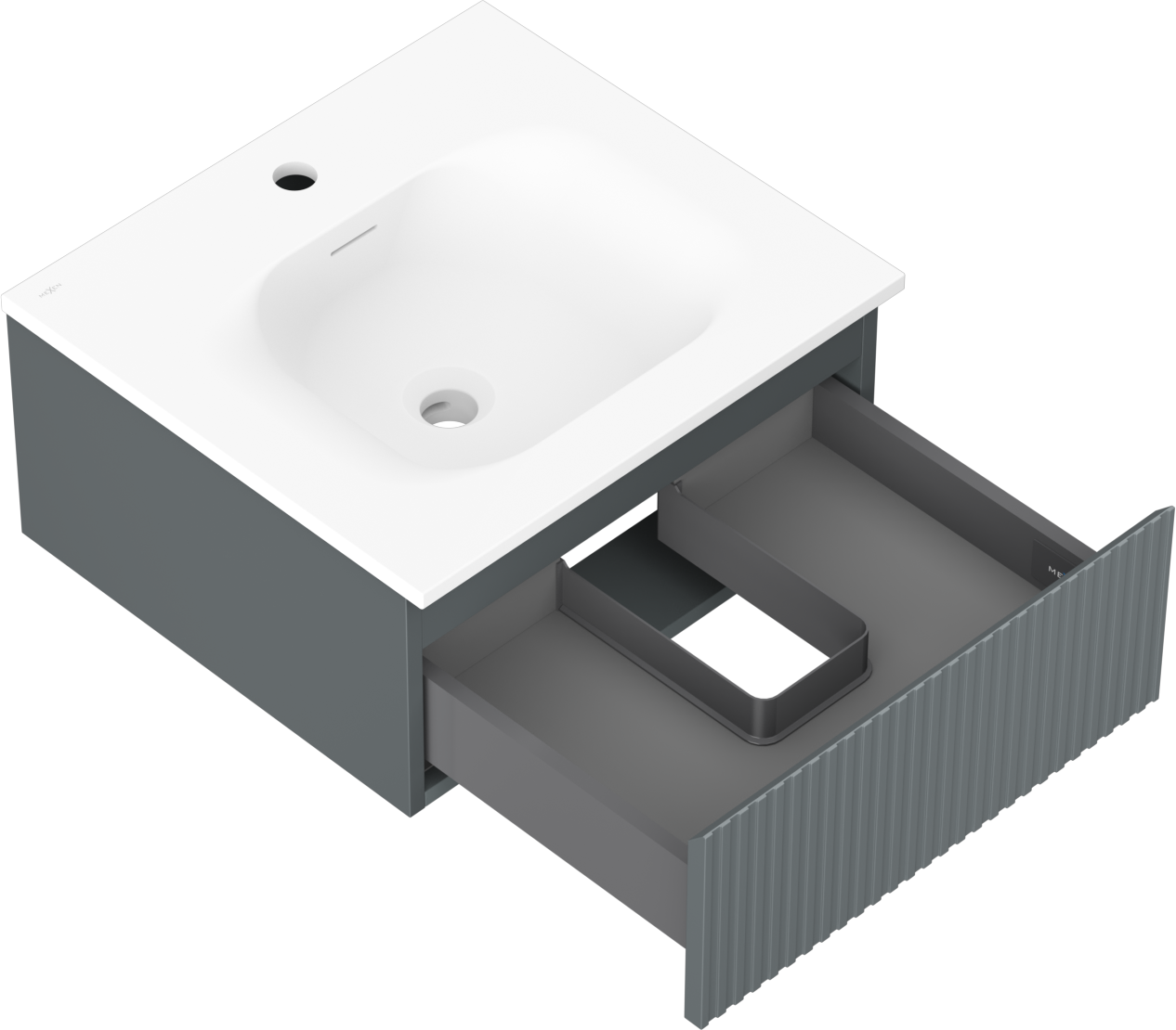 A fiókban lévő kivágás úgy van kialakítva, hogy befogadja a mosdó telepítéseknél szükséges szifont. Ennek köszönhetően a bútor teljesen funkcionálisan felszerelhető anélkül, hogy a fiók terének egy részét fel kellene áldozni a telepítés miatt.