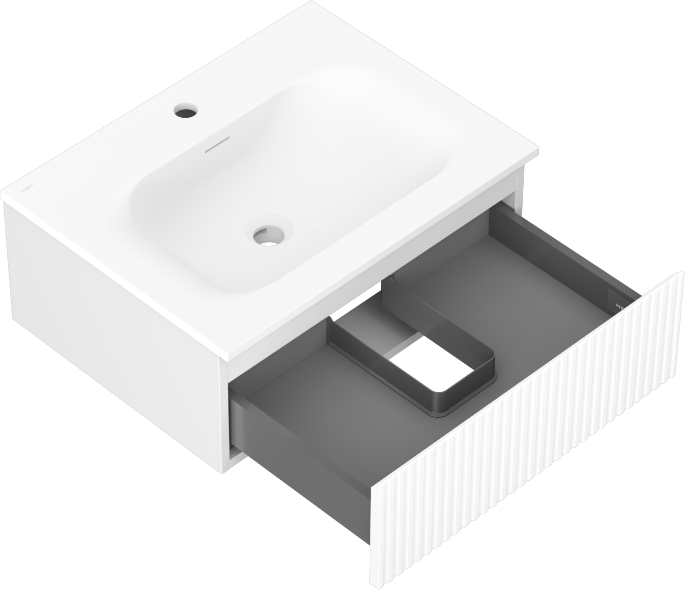 A fiókban lévő kivágás úgy van kialakítva, hogy befogadja a mosdó telepítéseknél szükséges szifont. Ennek köszönhetően a bútor teljesen funkcionálisan felszerelhető anélkül, hogy a fiók terének egy részét fel kellene áldozni a telepítés miatt.