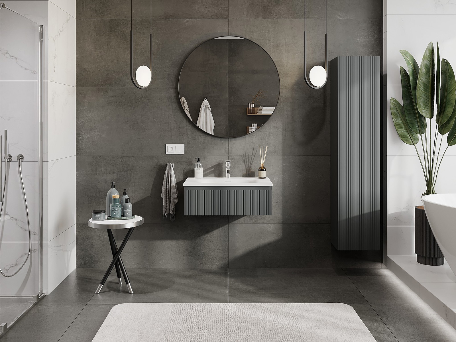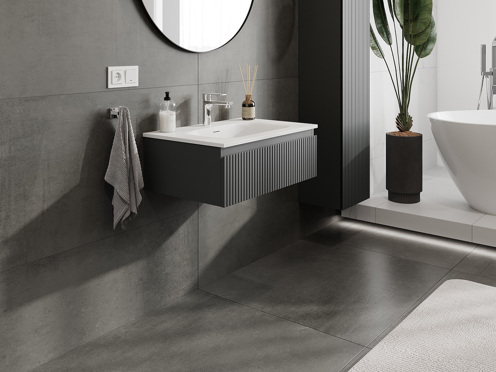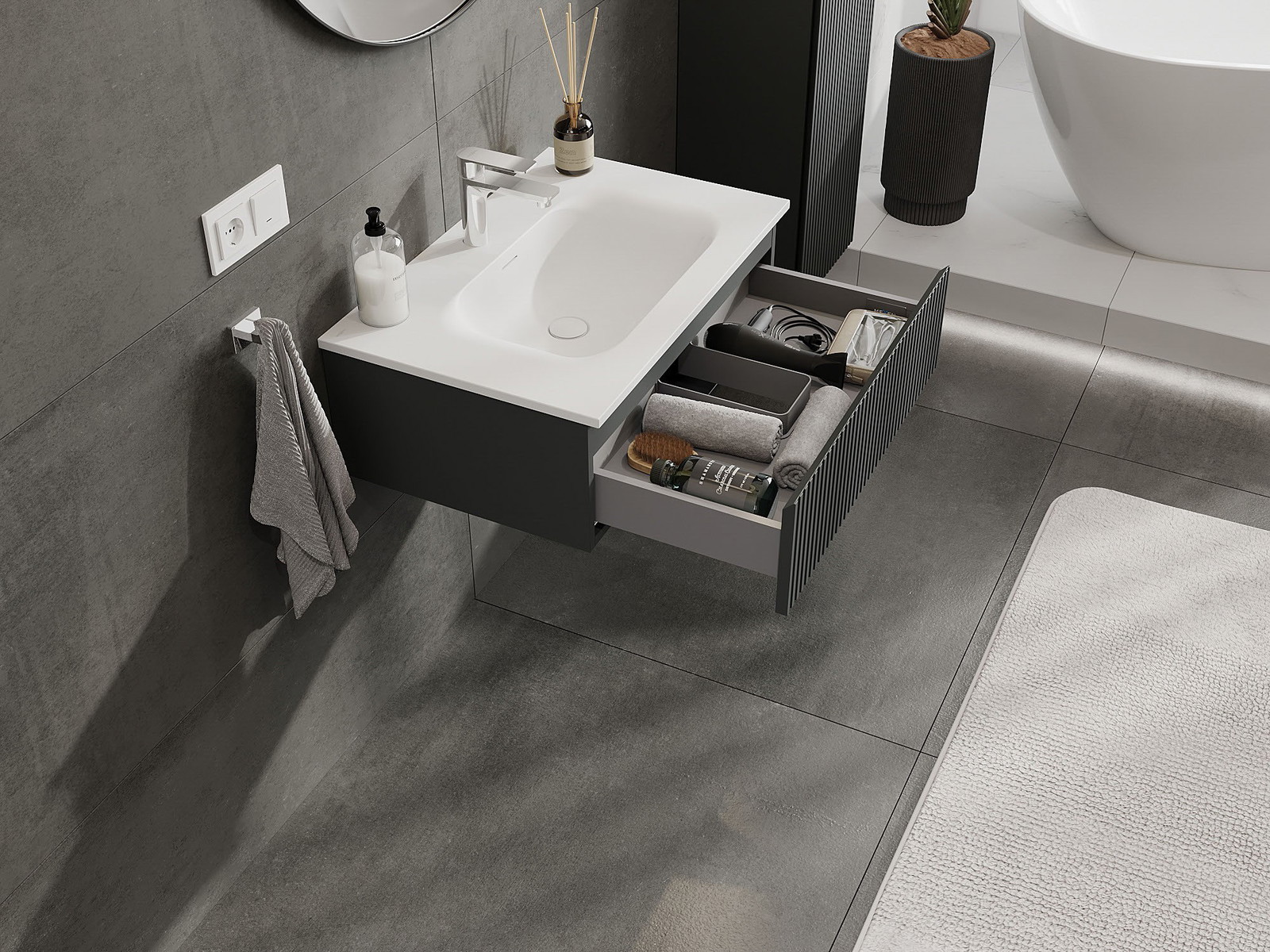 Mexen Rivel 70 cm-es fürdőszobaszekrény Vela mosdóval, 1 fiók, bordázott, grafit matt/fehér matt - 91A20-07023-1-BF66-W23M01