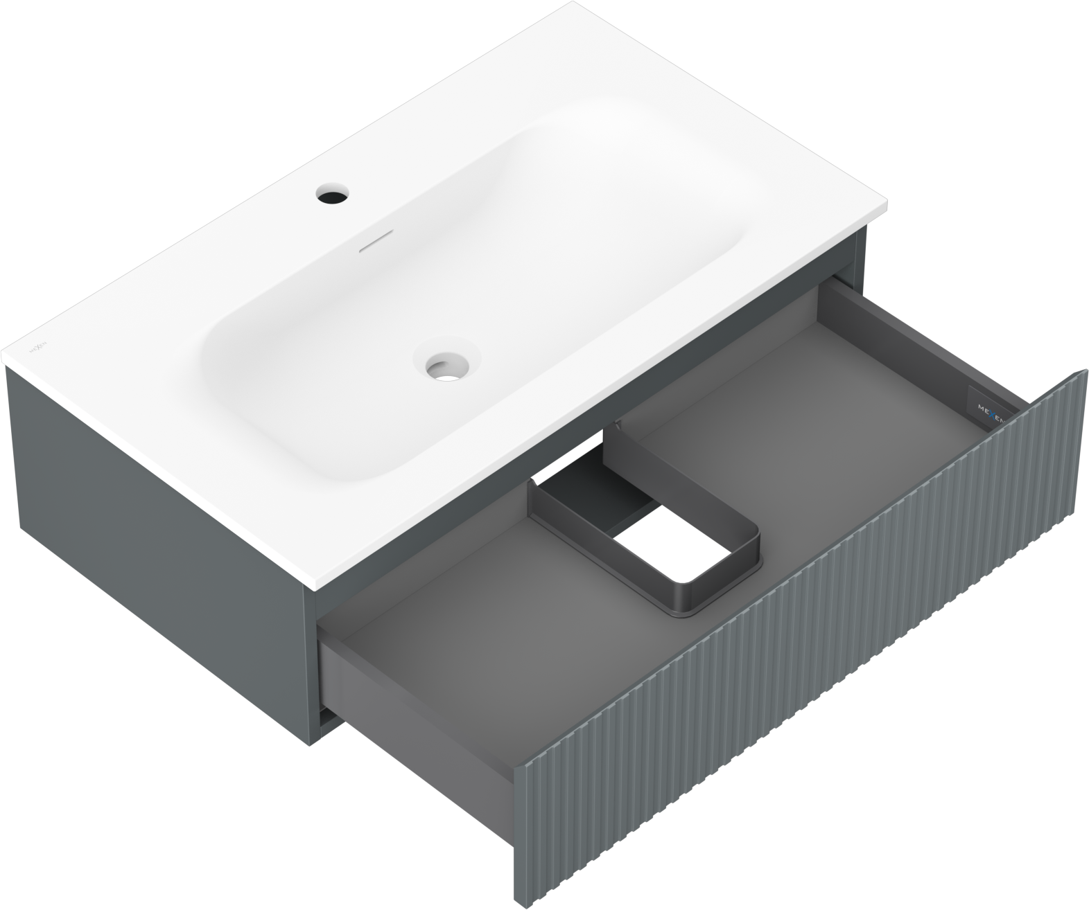A fiókban lévő kivágás úgy van kialakítva, hogy befogadja a mosdó telepítéseknél szükséges szifont. Ennek köszönhetően a bútor teljesen funkcionálisan felszerelhető anélkül, hogy a fiók terének egy részét fel kellene áldozni a telepítés miatt.