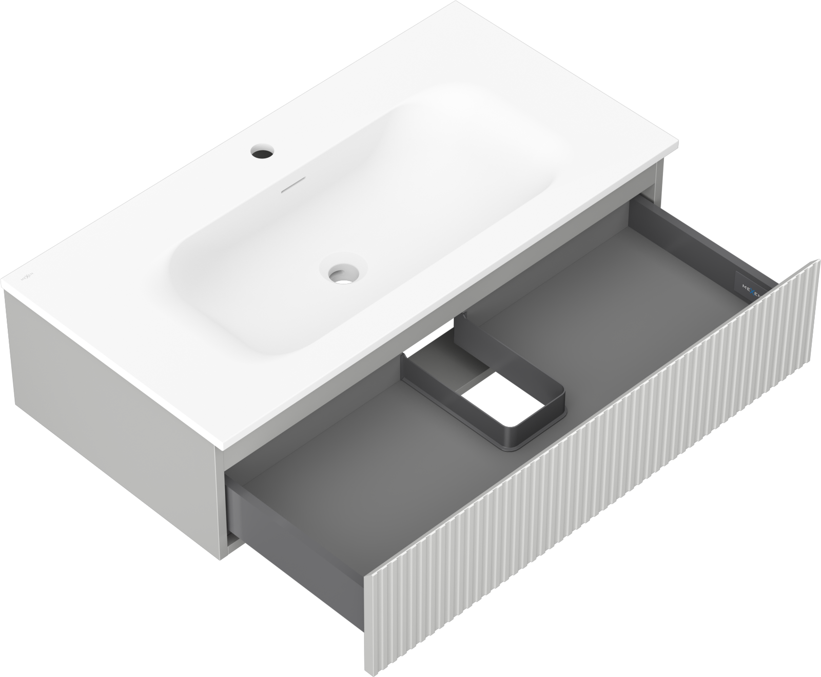 A fiókban lévő kivágás úgy van kialakítva, hogy befogadja a mosdó telepítéseknél szükséges szifont. Ennek köszönhetően a bútor teljesen funkcionálisan felszerelhető anélkül, hogy a fiók terének egy részét fel kellene áldozni a telepítés miatt.