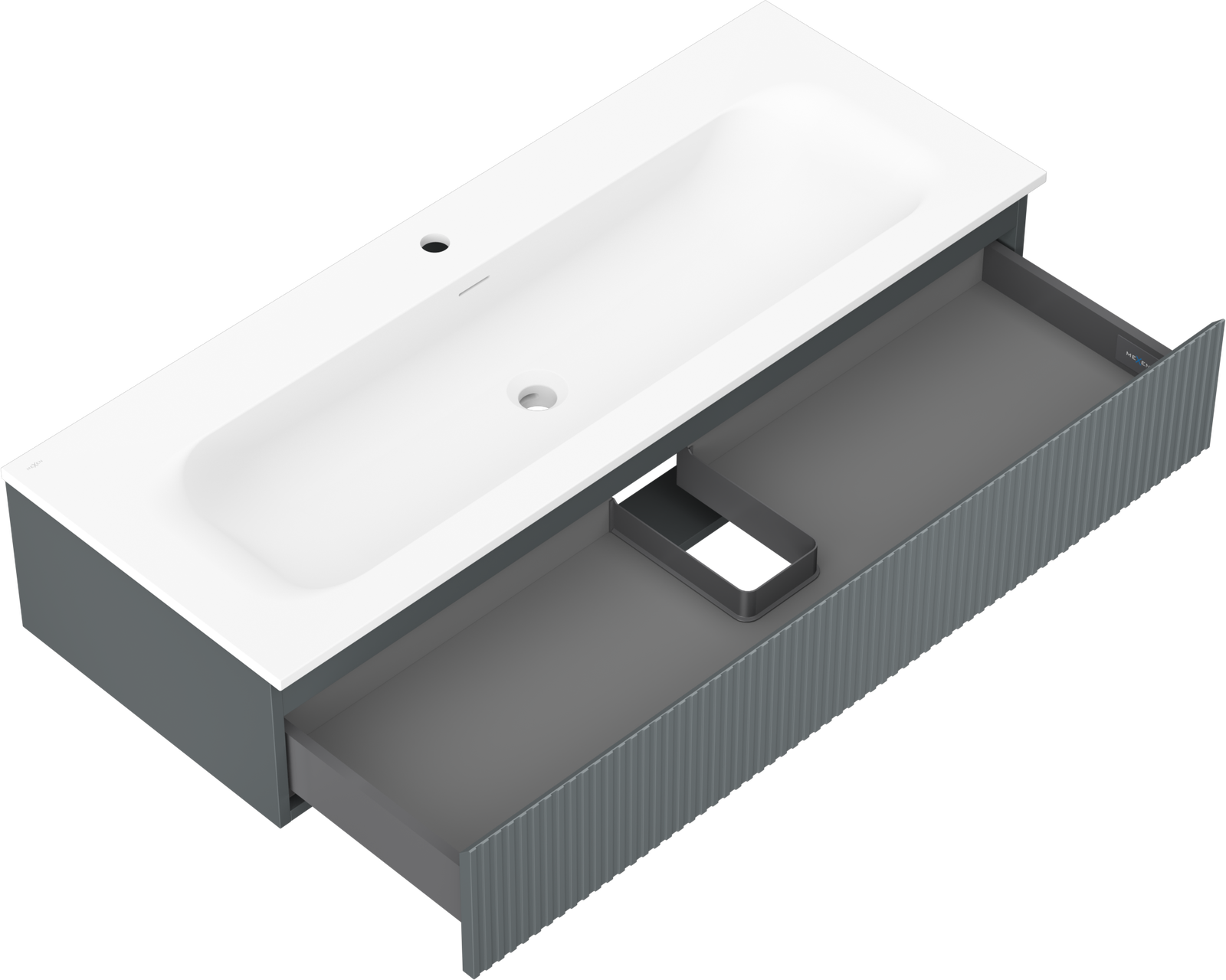 A fiókban lévő kivágás úgy van kialakítva, hogy befogadja a mosdó telepítéseknél szükséges szifont. Ennek köszönhetően a bútor teljesen funkcionálisan felszerelhető anélkül, hogy a fiók terének egy részét fel kellene áldozni a telepítés miatt.