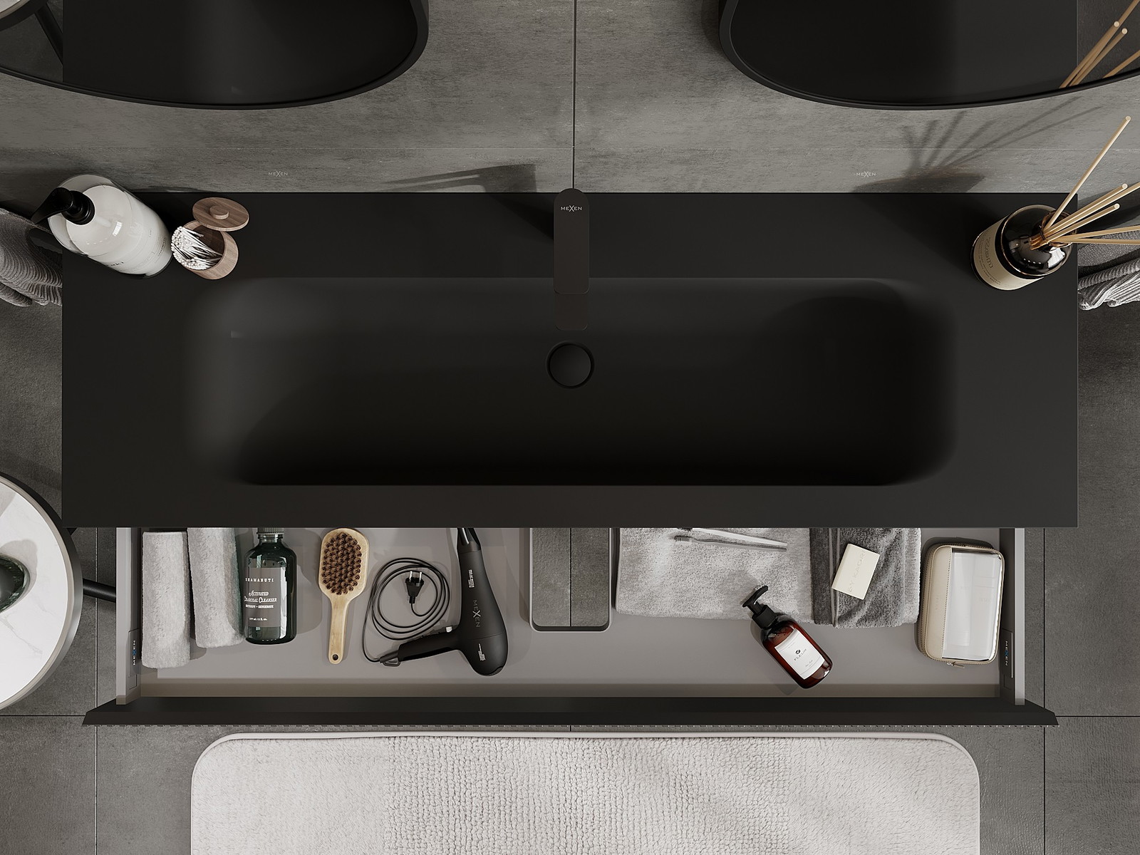 A fiókban lévő kivágás úgy van kialakítva, hogy befogadja a mosdó telepítéseknél szükséges szifont. Ennek köszönhetően a bútor teljesen funkcionálisan felszerelhető anélkül, hogy a fiók terének egy részét fel kellene áldozni a telepítés miatt.