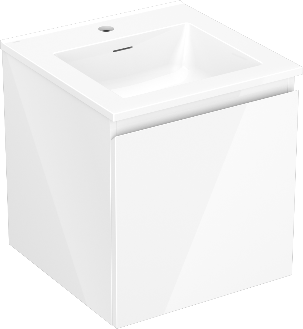 Mexen Orio 45 cm-es fürdőszobai szekrény Otis mosdóval, 1 fiókos, fényes fehér - 91A10-04547-1-BF00-W18M00