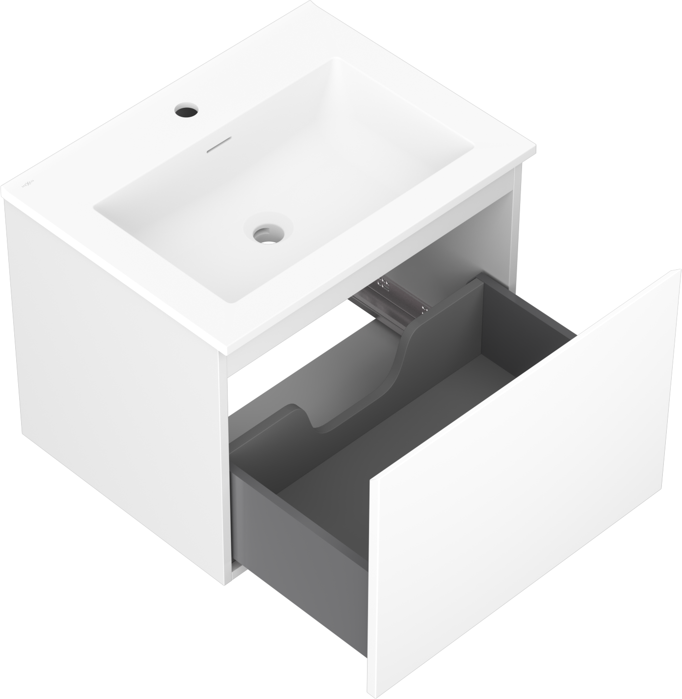 Mexen Orio 60 cm-es fürdőszobaszekrény Otis mosdóval, 1 fiók, fehér matt - 91A10-06047-1-BF01-W18M01