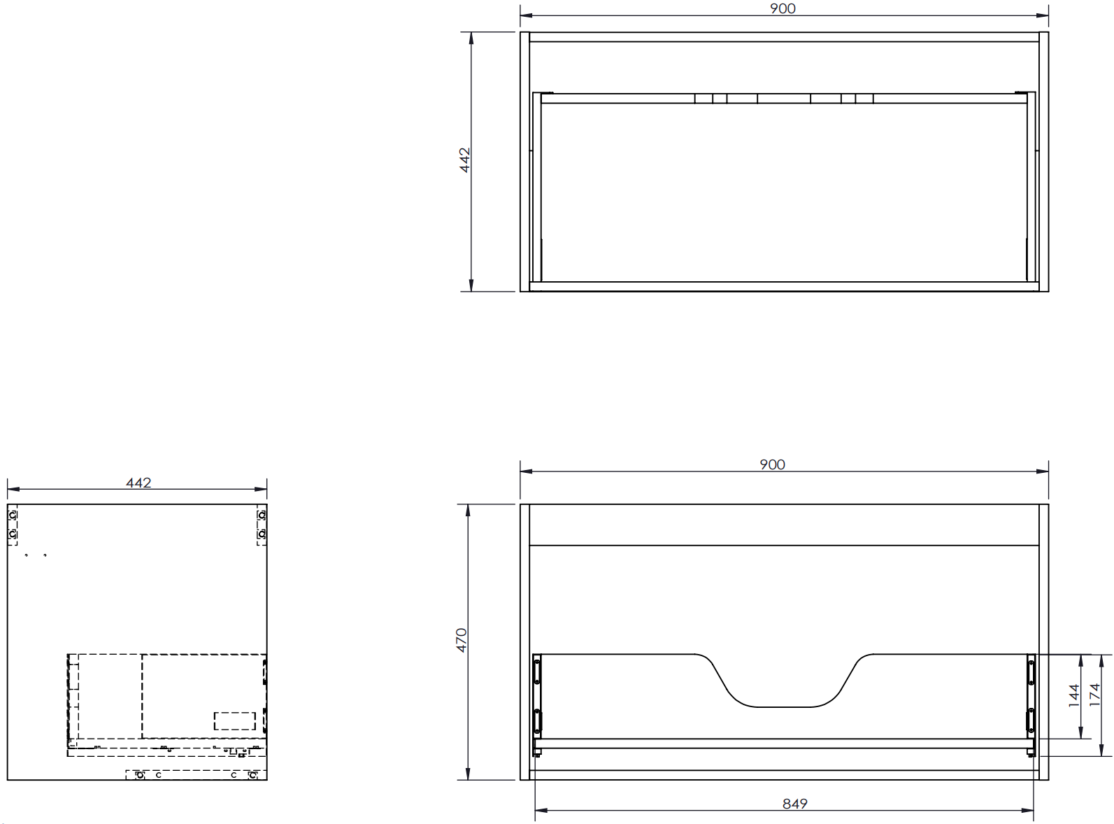 A fiókban lévő kivágás úgy van kialakítva, hogy befogadja a mosdó telepítéseknél szükséges szifont. Ennek köszönhetően a bútor teljesen funkcionálisan felszerelhető anélkül, hogy a fiók terének egy részét fel kellene áldozni a telepítés miatt.