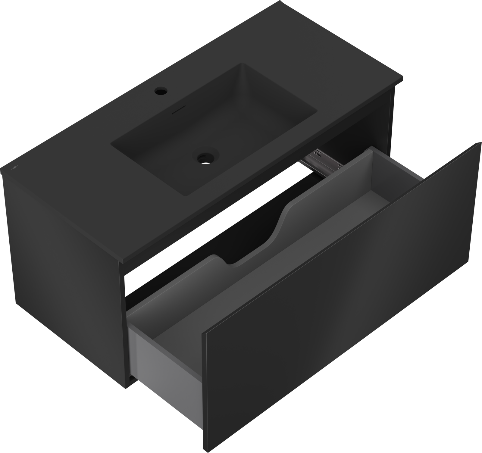 Mexen Orio 100 cm-es fürdőszobaszekrény Otis mosdóval, 1 fiók, fekete matt - 91A10-10047-1-BF71-W18M71