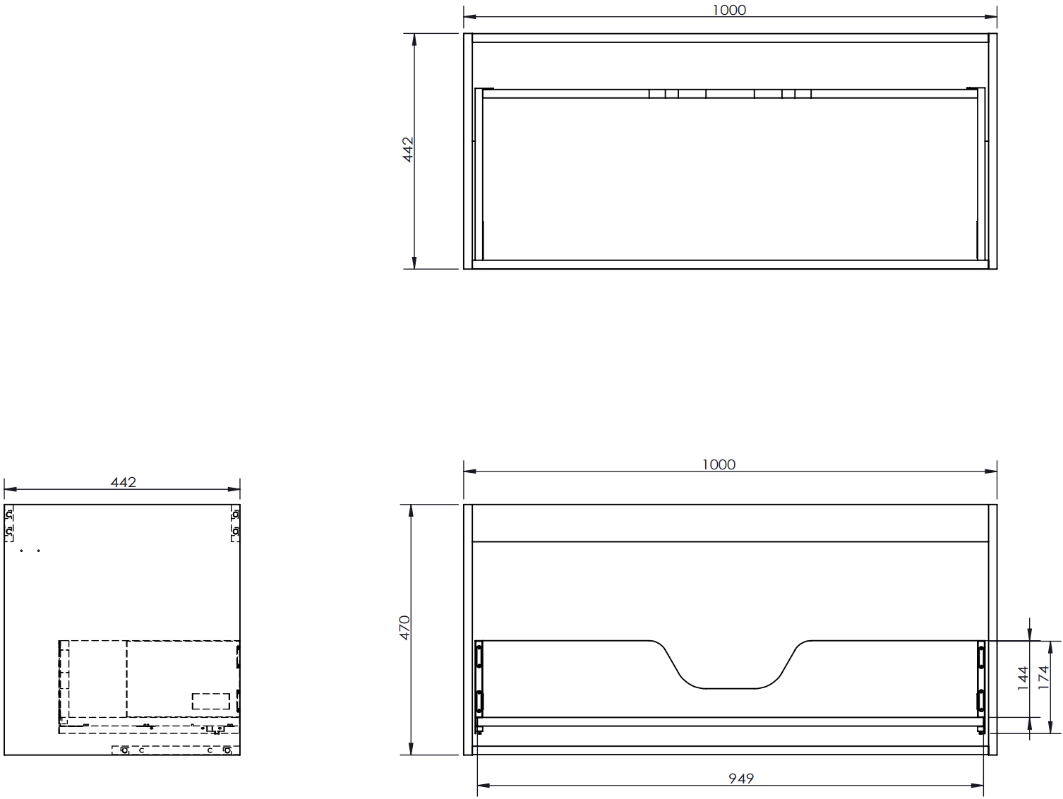 A fiókban lévő kivágás úgy van kialakítva, hogy befogadja a mosdó telepítéseknél szükséges szifont. Ennek köszönhetően a bútor teljesen funkcionálisan felszerelhető anélkül, hogy a fiók terének egy részét fel kellene áldozni a telepítés miatt.