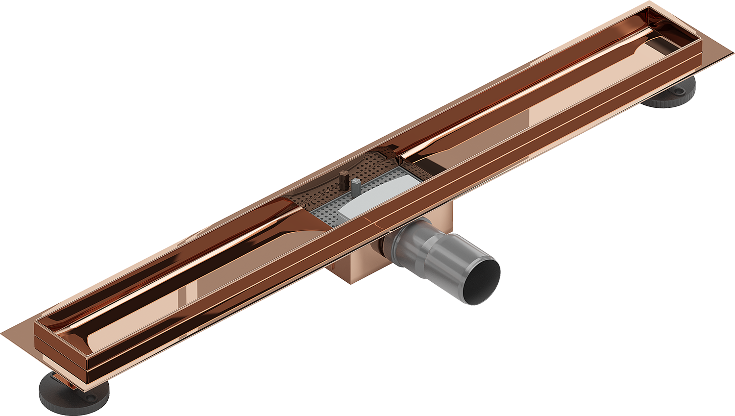 A lefolyó állítható lábakkal van felszerelve, amelyek lehetővé teszik a megfelelő lefolyómagasság beállítását és a szintezést egyenetlen felületen. Ily módon a lefolyó még jobban illeszkedik a fürdőszoba adott körülményeihez.