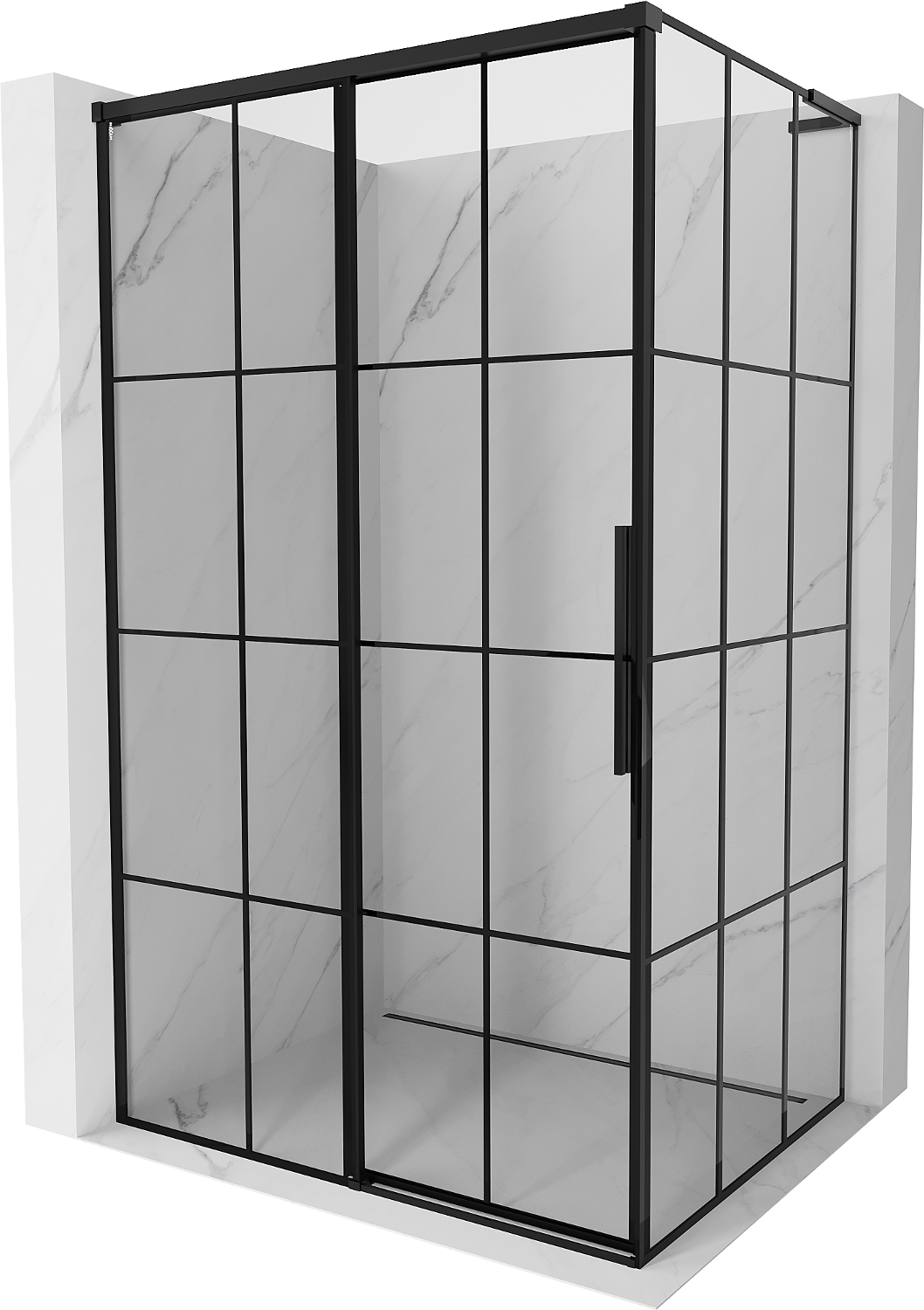 Mexen Rox L tolóajtós zuhanykabin, balos, 105 x 120 cm, fekete rács, fekete - 8C2L-105-120-70-77-L