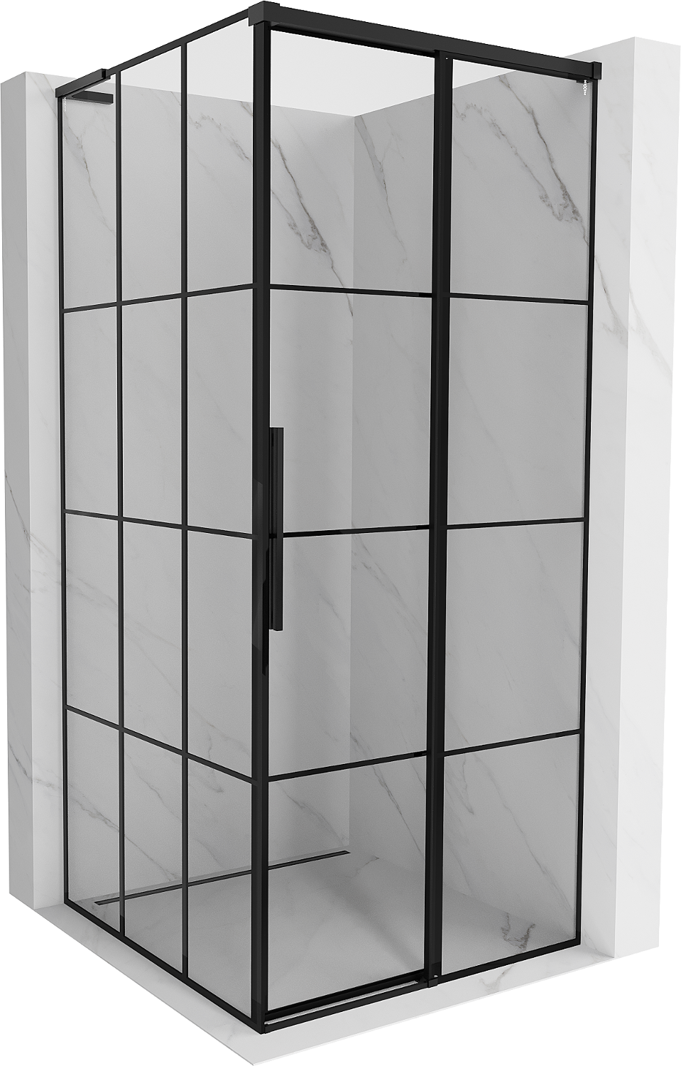 Mexen Rox L tolóajtós jobb zuhanykabin 100 x 100 cm, fekete rácsos, fekete - 8C2L-100-100-70-77-P