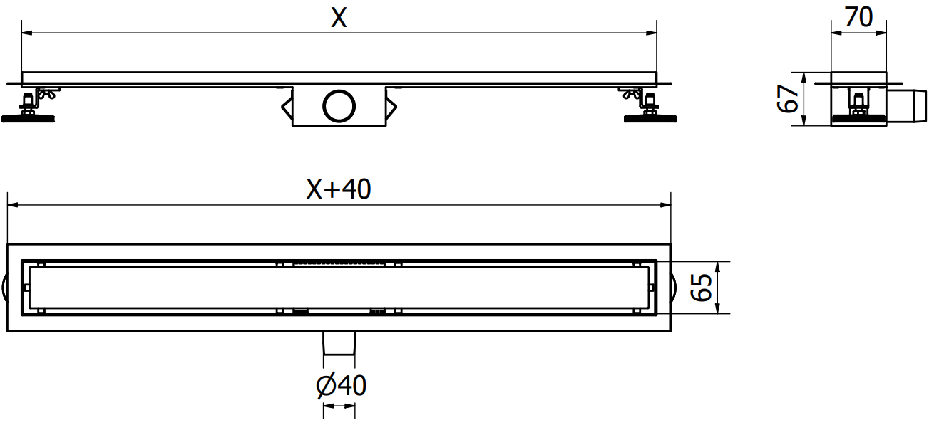A lefolyó állítható lábakkal van felszerelve, amelyek lehetővé teszik a megfelelő lefolyómagasság beállítását és a szintezést egyenetlen felületen. Ily módon a lefolyó még jobban illeszkedik a fürdőszoba adott körülményeihez.