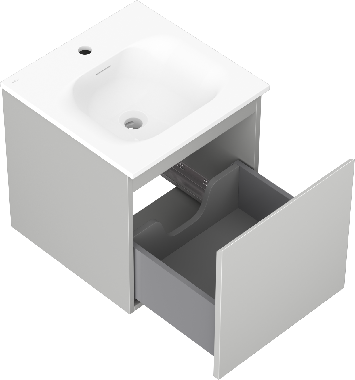 A fiókban lévő kivágás úgy van kialakítva, hogy befogadja a mosdó telepítéseknél szükséges szifont. Ennek köszönhetően a bútor teljesen funkcionálisan felszerelhető anélkül, hogy a fiók terének egy részét fel kellene áldozni a telepítés miatt.