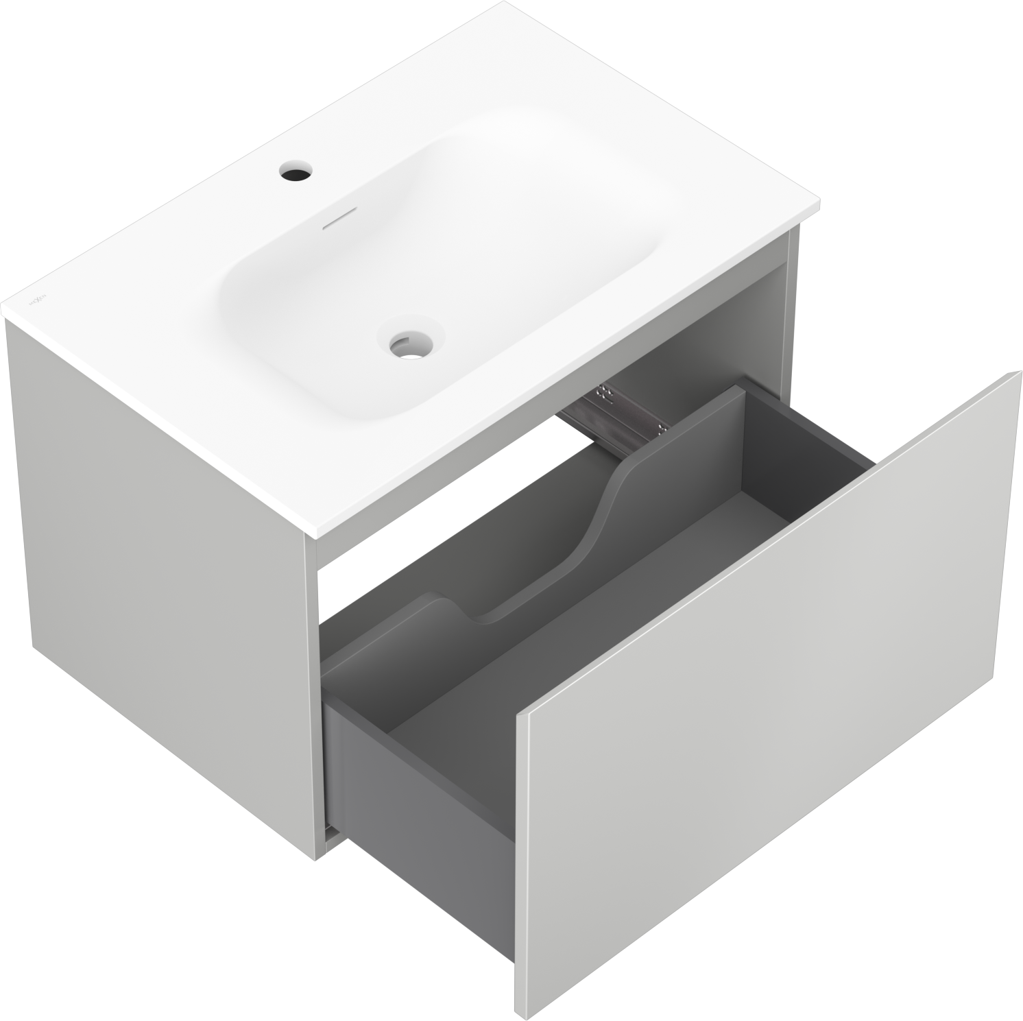 A fiókban lévő kivágás úgy van kialakítva, hogy befogadja a mosdó telepítéseknél szükséges szifont. Ennek köszönhetően a bútor teljesen funkcionálisan felszerelhető anélkül, hogy a fiók terének egy részét fel kellene áldozni a telepítés miatt.