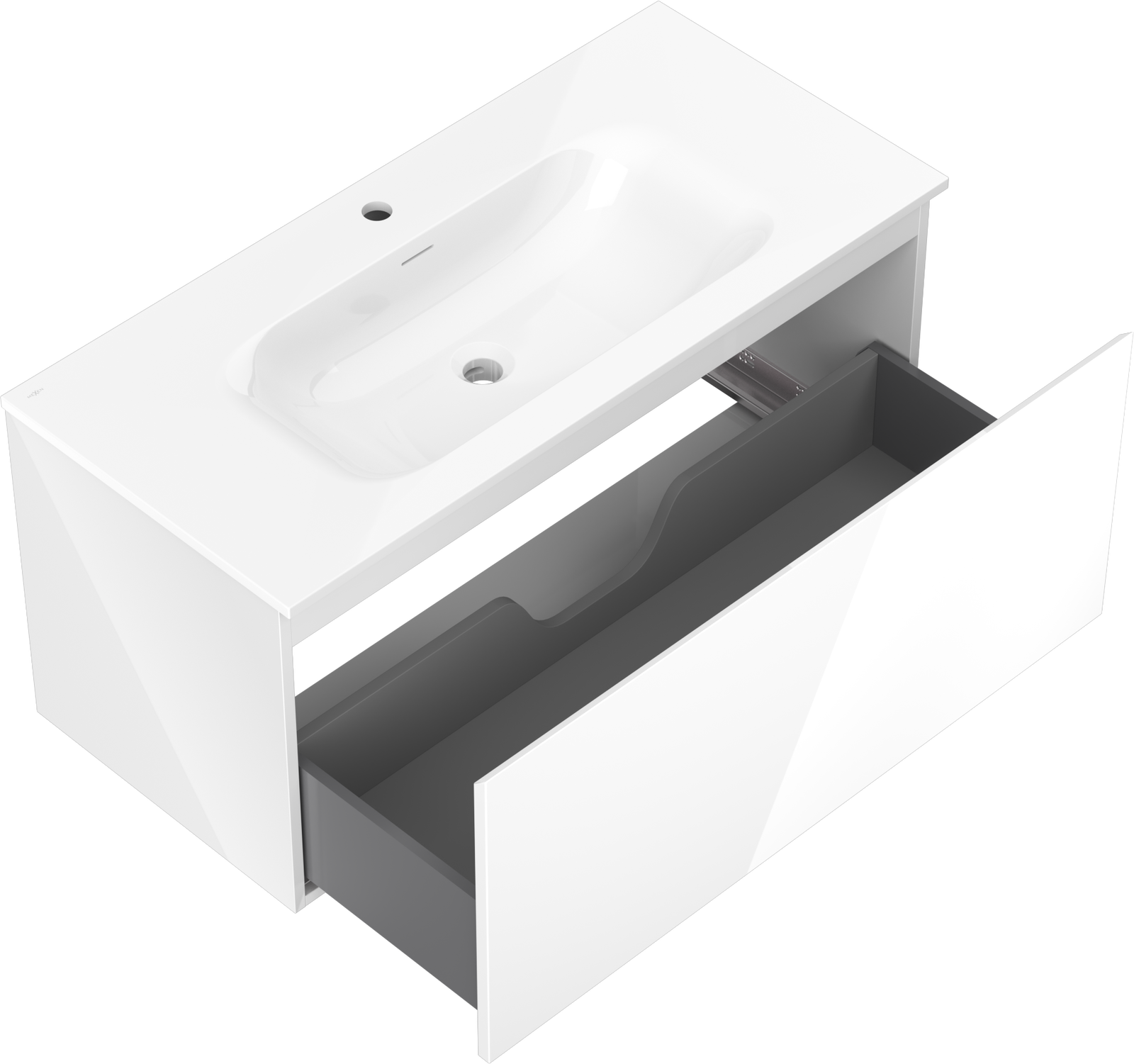 A fiókban lévő kivágás úgy van kialakítva, hogy befogadja a mosdó telepítéseknél szükséges szifont. Ennek köszönhetően a bútor teljesen funkcionálisan felszerelhető anélkül, hogy a fiók terének egy részét fel kellene áldozni a telepítés miatt.