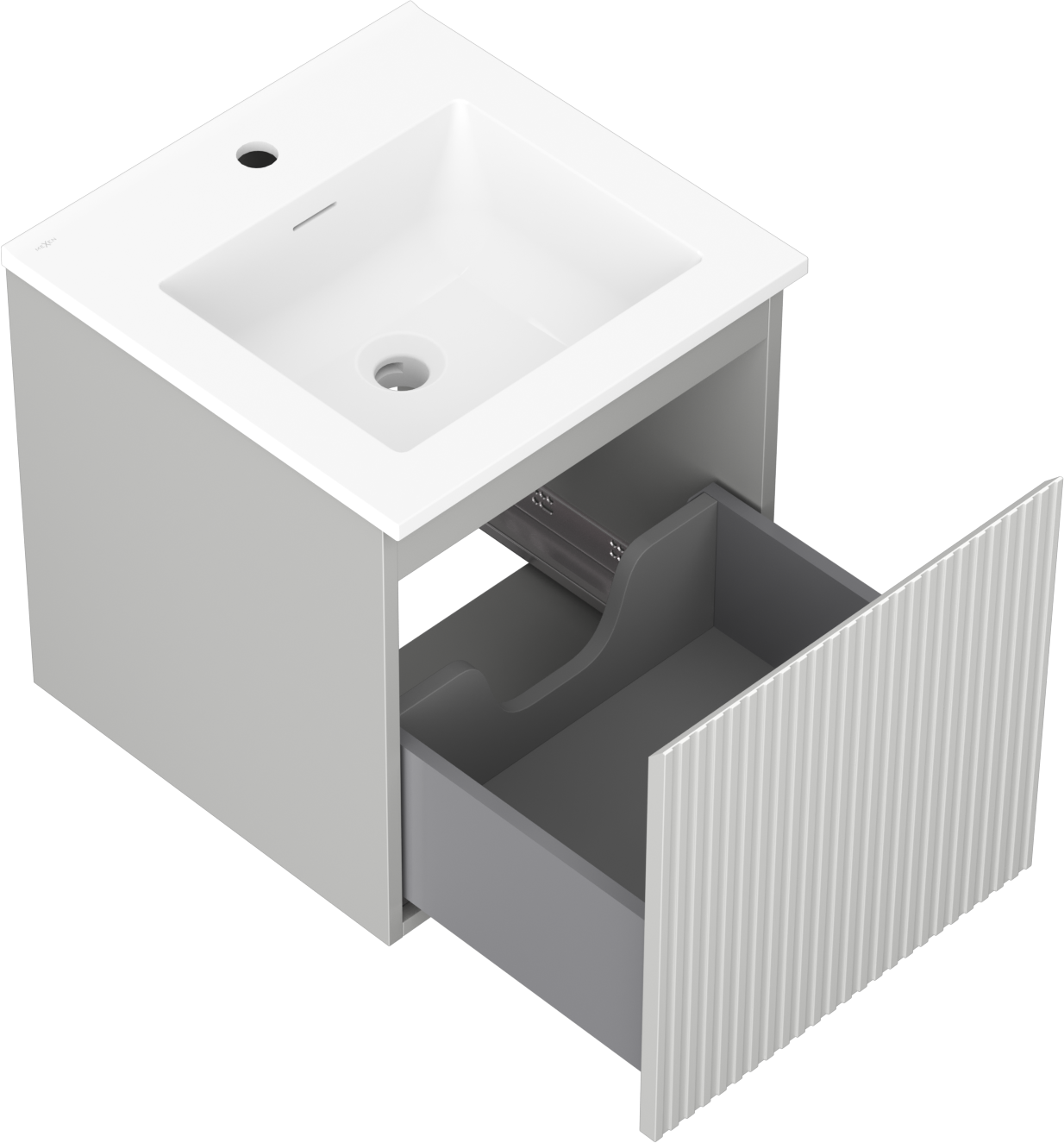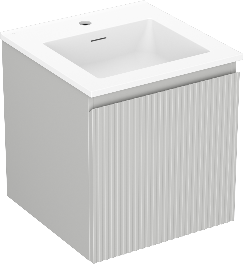 Mexen Rivel 45 cm-es fürdőszobai szekrény Otis mosdóval, 1 fiók, bordázott, szürke matt/fehér matt - 91A20-04547-1-BF62-W18M01