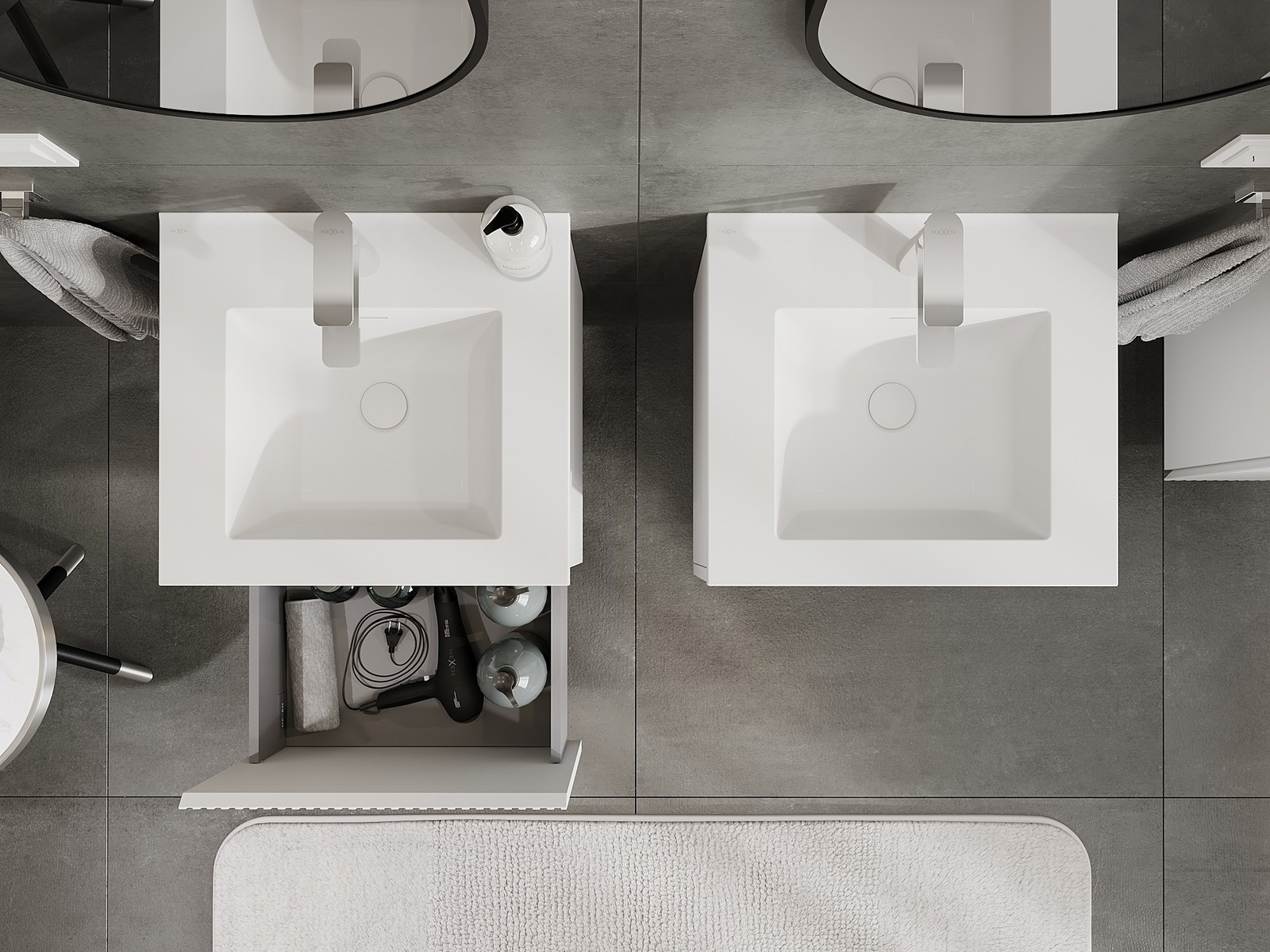 A fiókban lévő kivágás úgy van kialakítva, hogy befogadja a mosdó telepítéseknél szükséges szifont. Ennek köszönhetően a bútor teljesen funkcionálisan felszerelhető anélkül, hogy a fiók terének egy részét fel kellene áldozni a telepítés miatt.
