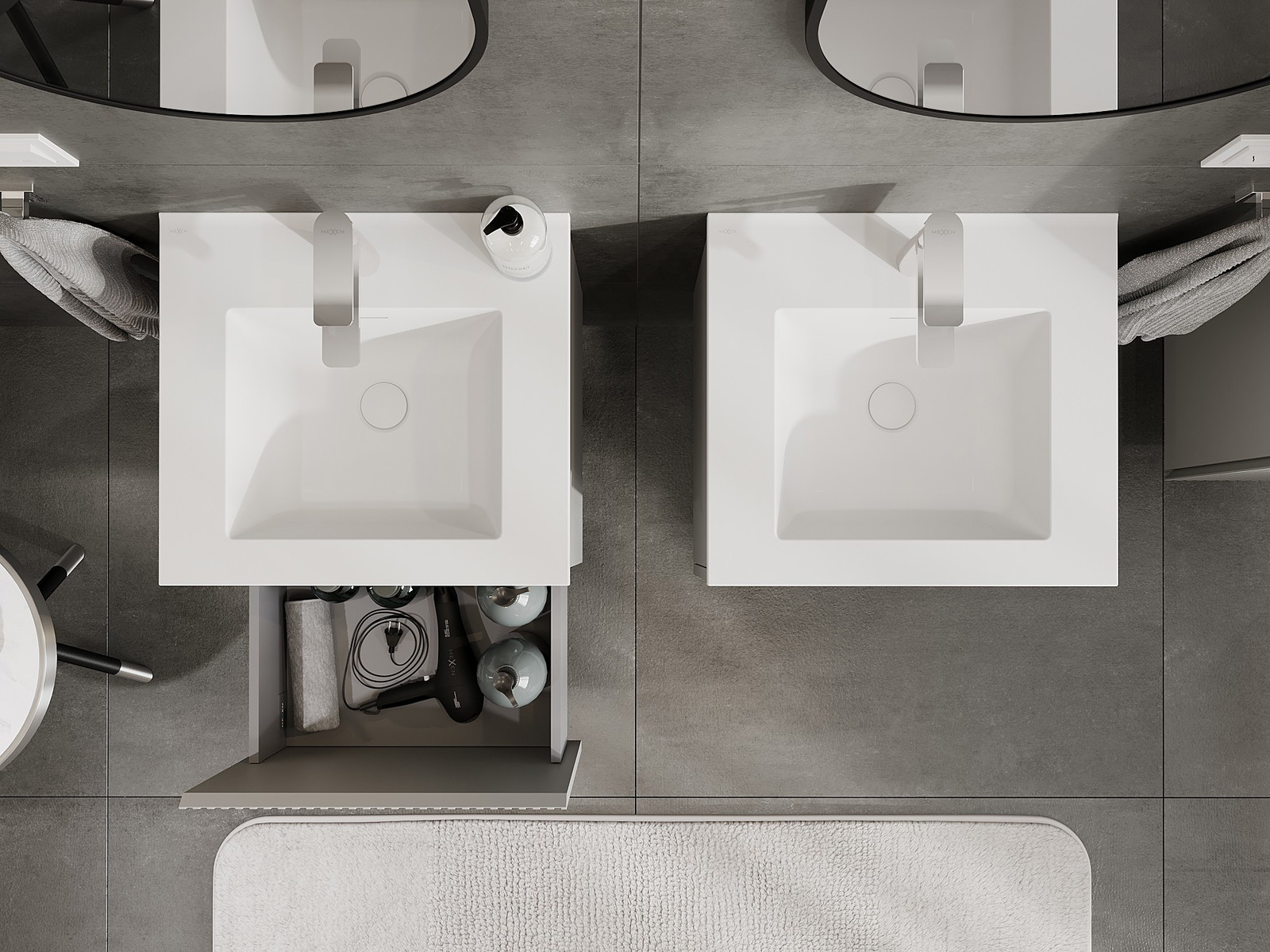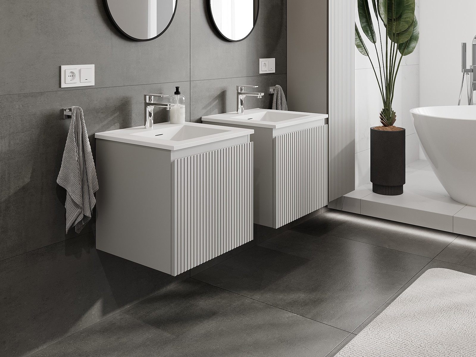 Mexen Rivel 50 cm-es fürdőszobaszekrény Otis mosdóval, 1 fiók, bordázott, szürke matt/fehér matt - 91A20-05047-1-BF62-W18M01