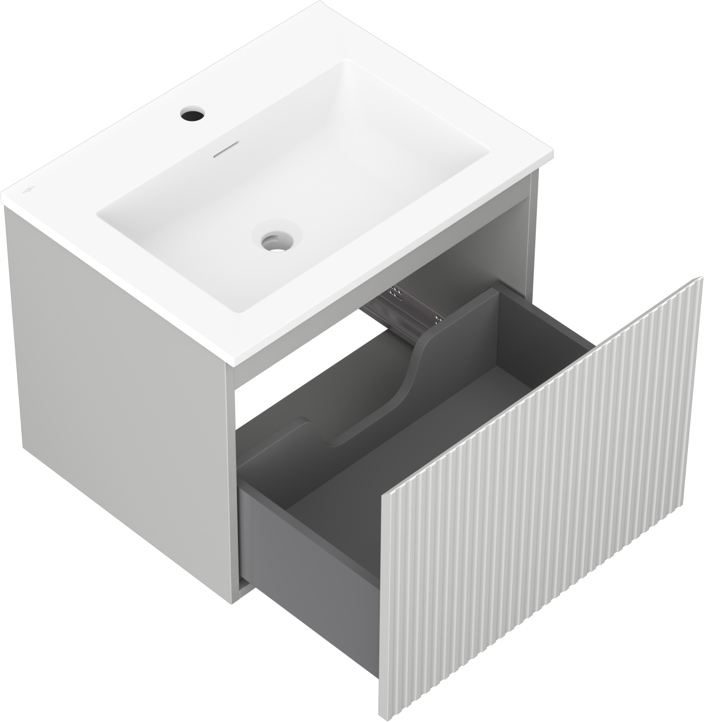 Mexen Rivel fürdőszobai szekrény 60 cm mosdóval Otis, 1 fiók, bordázott, szürke matt/fehér matt - 91A20-06047-1-BF62-W18M01