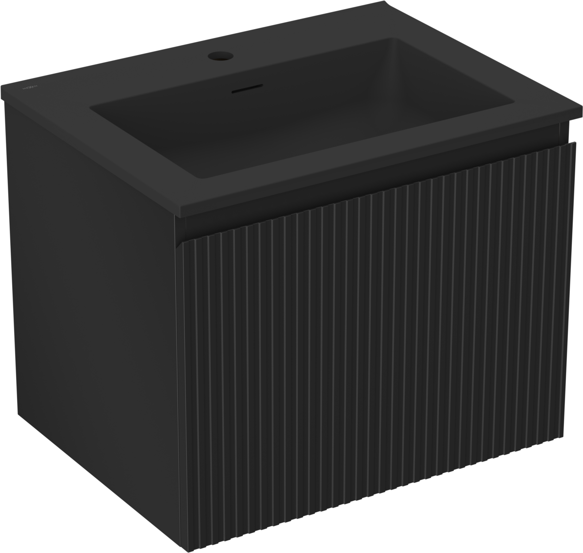 Mexen Rivel fürdőszobai szekrény 60 cm mosdóval Otis, 1 fiók, barázdált, fekete matt - 91A20-06047-1-BF71-W18M71