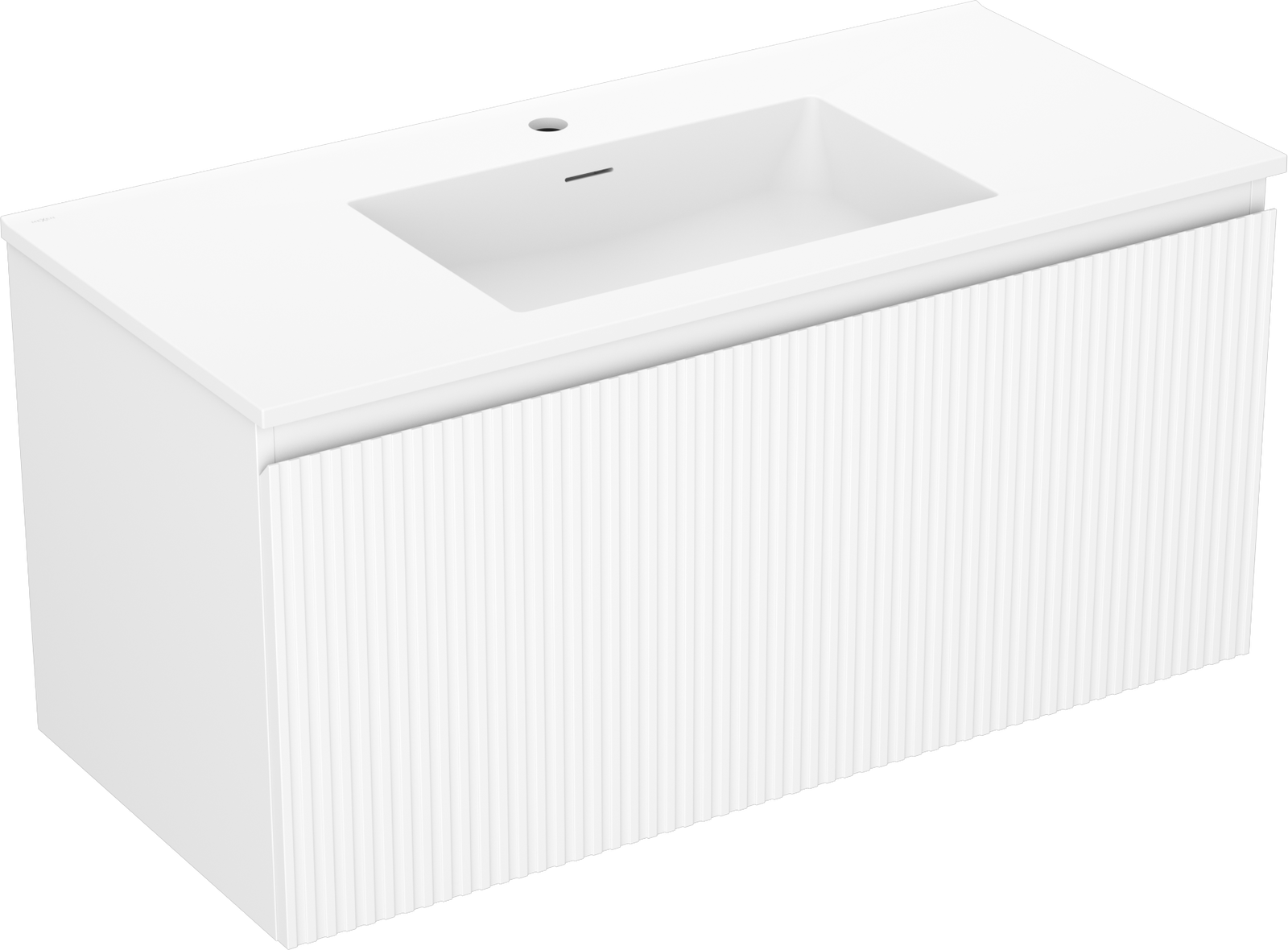 Mexen Rivel fürdőszobai szekrény 100 cm mosdóval Otis, 1 fiók, bordázott, fehér matt - 91A20-10047-1-BF01-W18M01