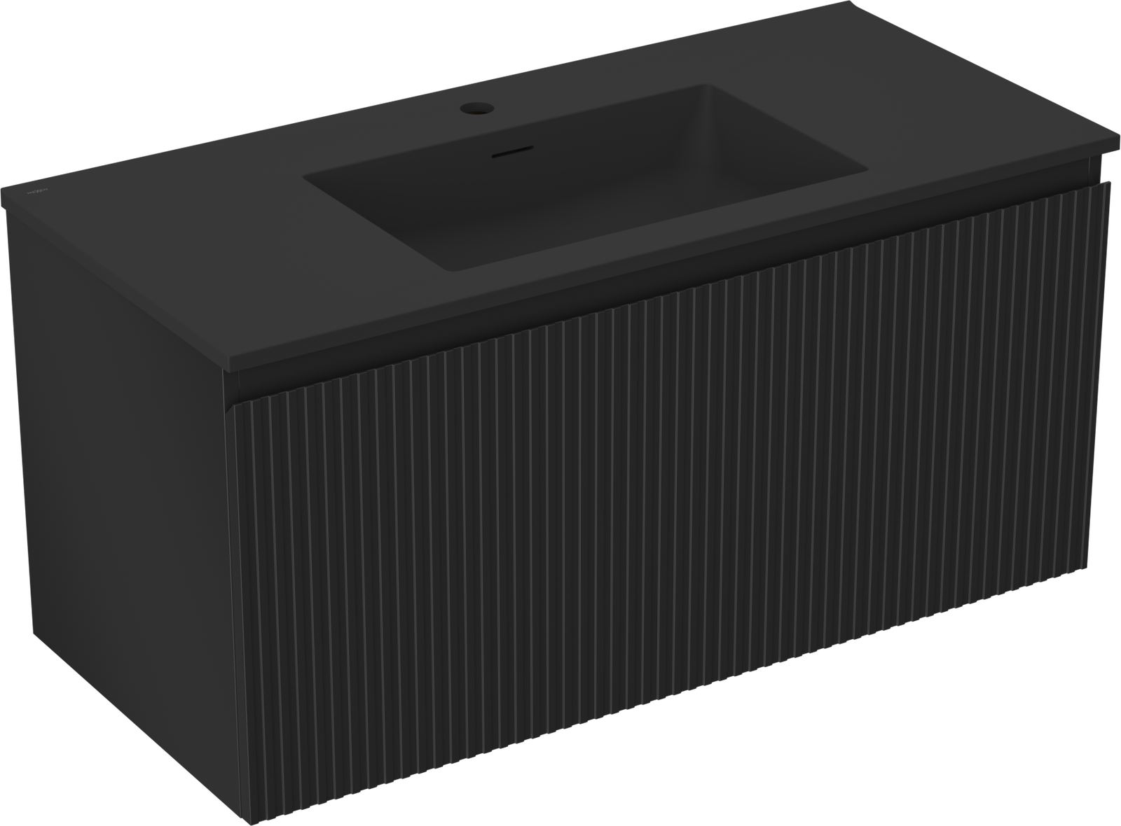 Mexen Rivel 100 cm-es fürdőszobai szekrény Otis mosdóval, 1 fiókos, bordázott, fekete matt - 91A20-10047-1-BF71-W18M71