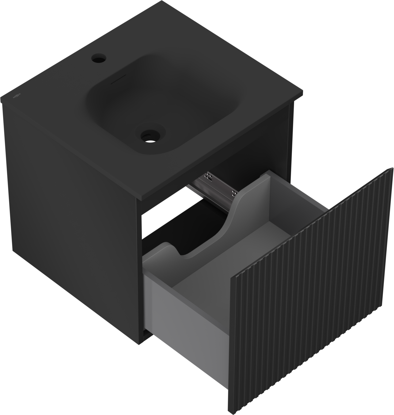 A fiókban lévő kivágás úgy van kialakítva, hogy befogadja a mosdó telepítéseknél szükséges szifont. Ennek köszönhetően a bútor teljesen funkcionálisan felszerelhető anélkül, hogy a fiók terének egy részét fel kellene áldozni a telepítés miatt.