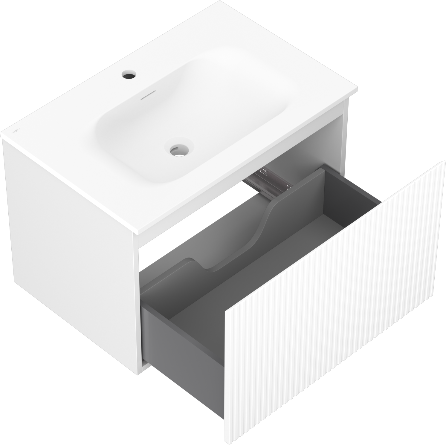 A fiókban lévő kivágás úgy van kialakítva, hogy befogadja a mosdó telepítéseknél szükséges szifont. Ennek köszönhetően a bútor teljesen funkcionálisan felszerelhető anélkül, hogy a fiók terének egy részét fel kellene áldozni a telepítés miatt.